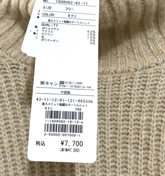 ポリエステル 62% アクリル 18% ナイロン 12% 毛 5% ポリウレタン 3%