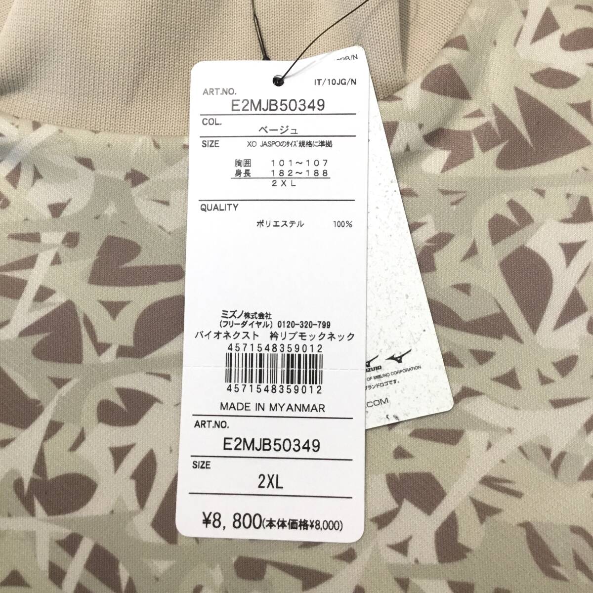 | 【新品】ミズノ ゴルフ インナーシャツ 2XL バイオネクスト 衿リブ モックネック 裏起毛 総柄 保温 E2MJB50349 税込8,800円 アンダーシャツ | |||