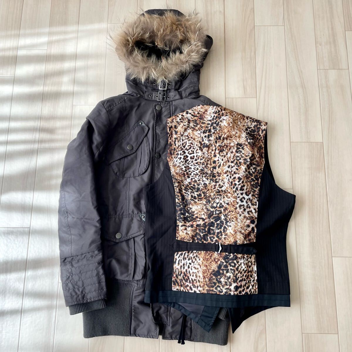 2枚セット 00s PPFM Fur Jacket Layered Vest M archive vintage Y2K ファージャケット ミリタリー レイヤードベスト レオパード ヒョウ柄