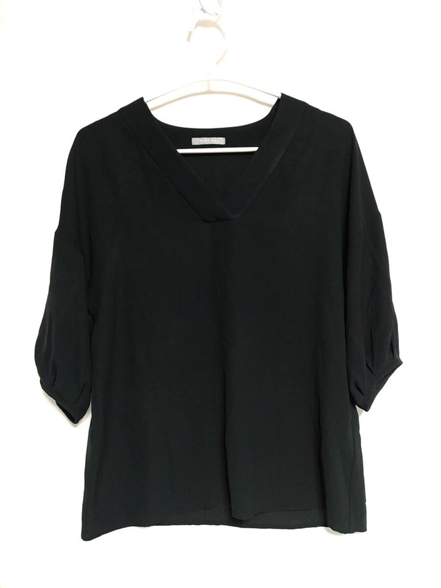 theory luxe セオリーリュクス 七分袖カットソー 38 ブラック 黒 Vネック レディース 日本製 NO.03-6308206