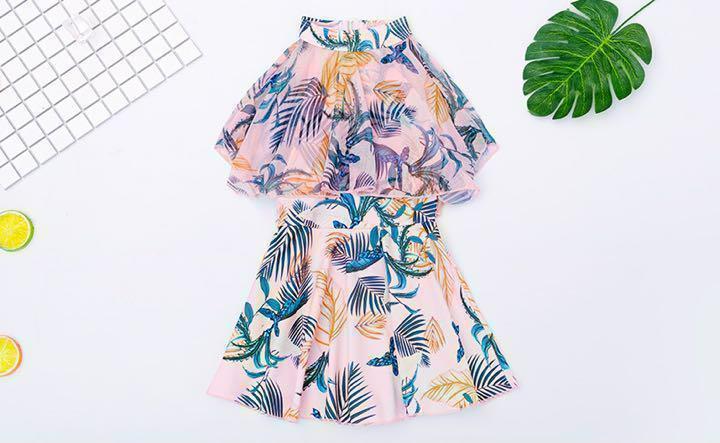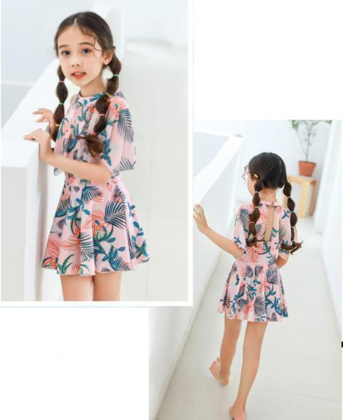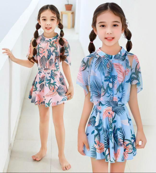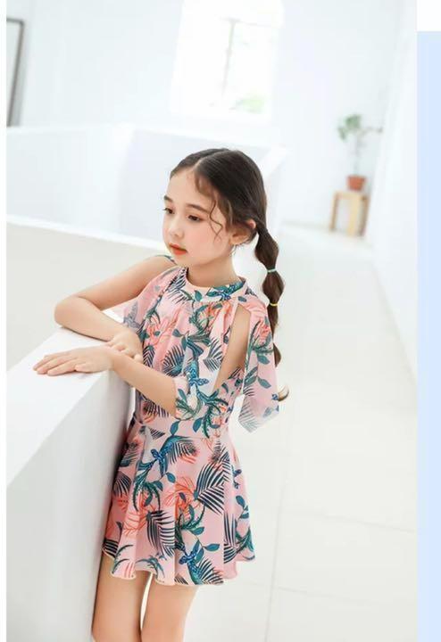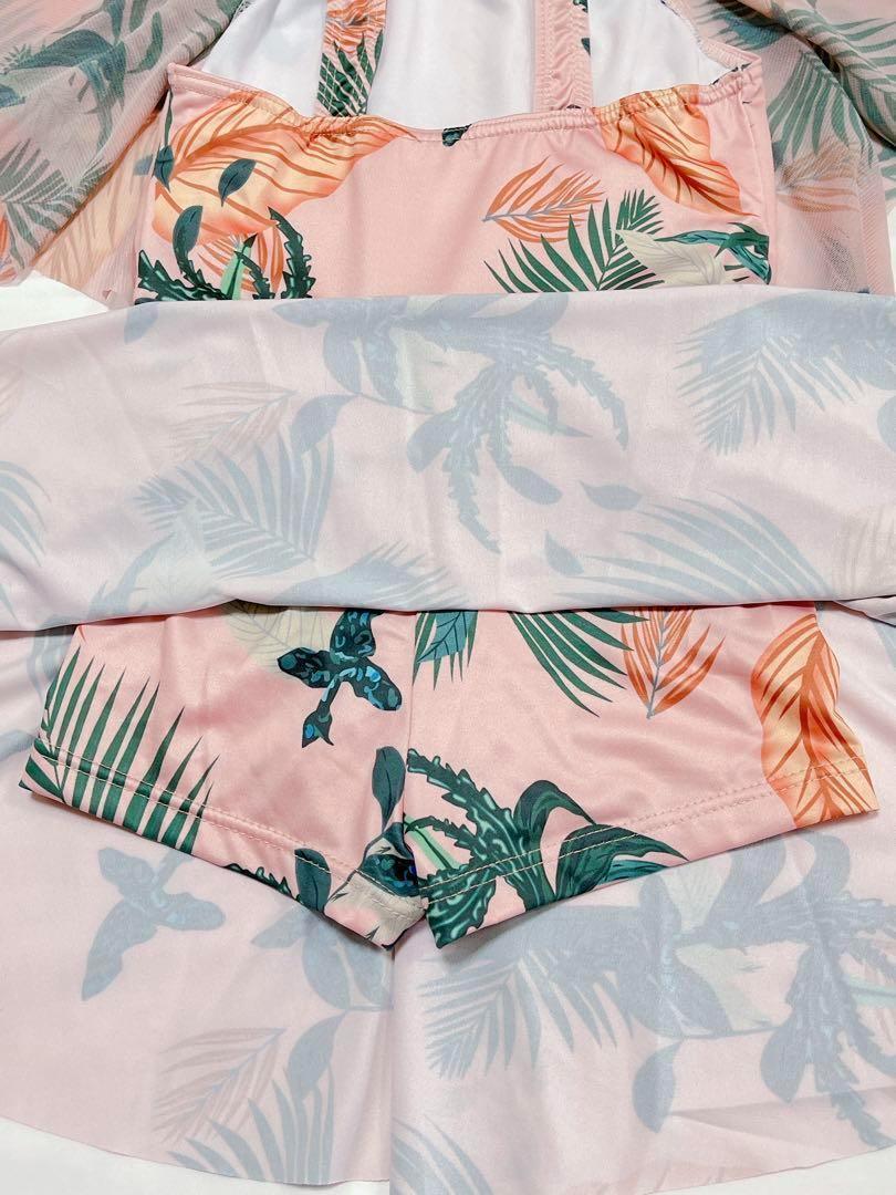 150cm 女の子用ワンピース水着可愛いボタニカル柄♪子ども ガールズ タンキニ