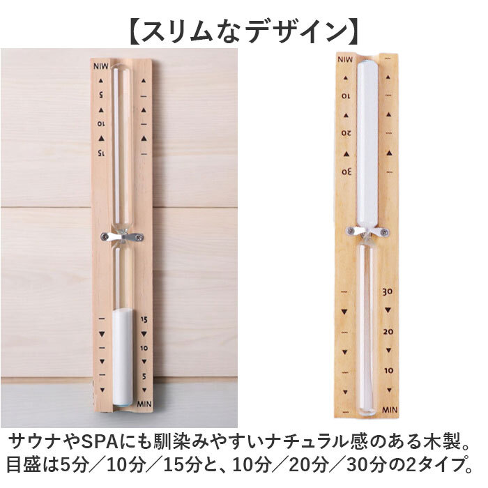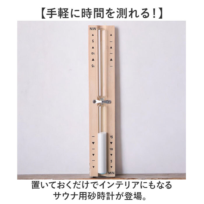 | 商品説明 | ・・【手軽に時間を測れる!】 ・置いておくだけでインテリアにもなるサウナ用砂時計が登場。 ・【ひっくり返すだけで簡単】 ・時間を測りたい時に上下にひっくり返すだけ!いざという時にも便利な、設定不要のアナログ構造。 ・【スリムなデザイン】 ・サウナやSPAにも馴染みやすいナチュラル感のある木製。5分/10分/15分の目盛つき。 ・【時間が見やすいカラーサンド】 ・ブラックの文字盤とカラフルなサンドは時間が見やすくとってもキュート。 ・【回転する背面板】 ・付属のネジで背面板を固定すれば、360度回転するのでひっくり返しやすい◎ ・【知育道具としても活躍】 ・歯磨きや朝の準備など・・・お子さまが時間の感覚を身につけるトレーニングにもおすすめ! |