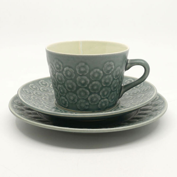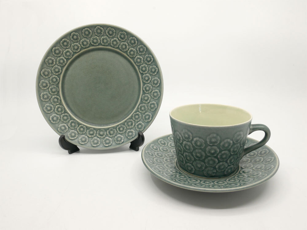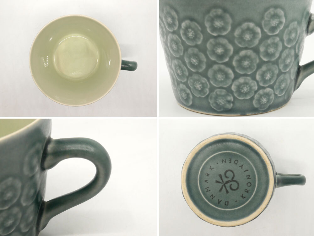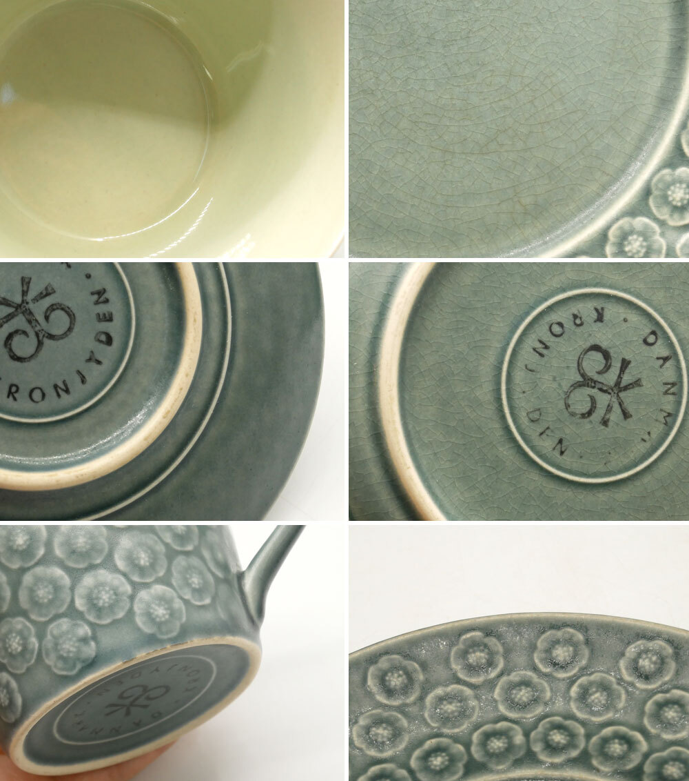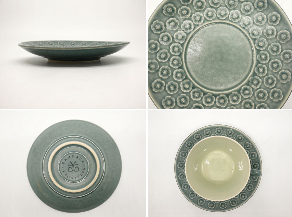 | コメント | デンマーク" クロニーデン KRONJYDEN " 『 アズール / Azur 』の出品です! イェンス・クイストゴーにより手掛けられ、お花をモチーフにした可愛らしいデザイン。寒色の釉薬を使用しながらも、どことなく温かみを感じさせてくれますので、季節を問わずお使い頂けます。 釉薬の掛かり具合によって、レリーフの濃淡が際立ち、個体差が生まれる為、1点1点異なる風合いが特徴となっております。 今回、ティータイムに重宝するトリオセットが入荷致しました。在庫限りとなりますので、是非この機会をお見逃しなく。ご注文はお早めに♪ ※当ショップは、主にリサイクル品を取り扱っております。基本的にUSED品である事をご理解頂き、ご入札をご検討下さいませ。 |