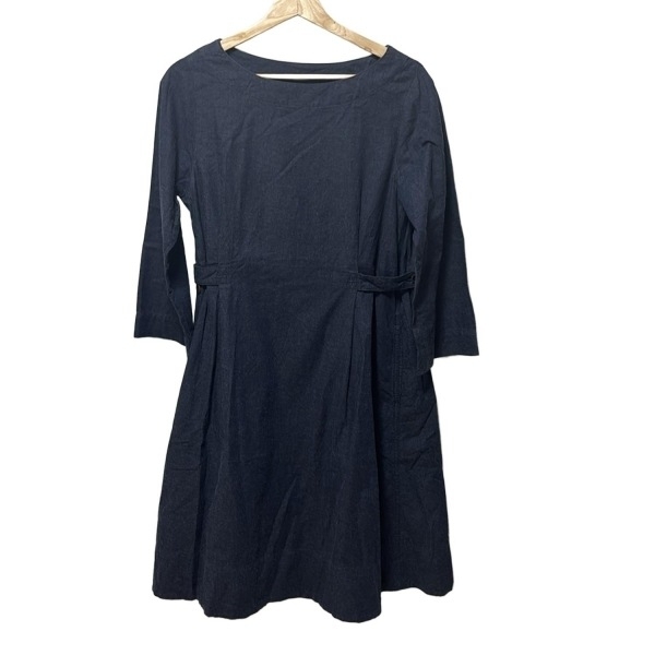 エムエイチエル MHL. サイズ2 M - ネイビー レディース クルーネック/長袖/ひざ丈 美品 ワンピース