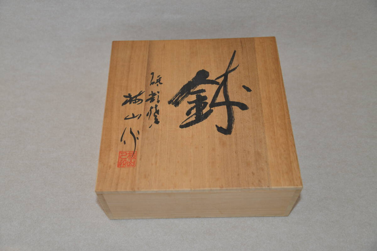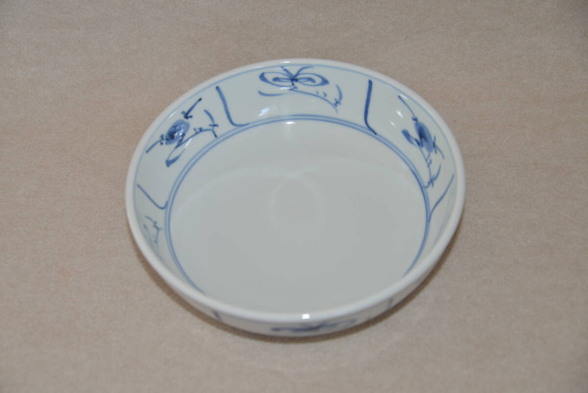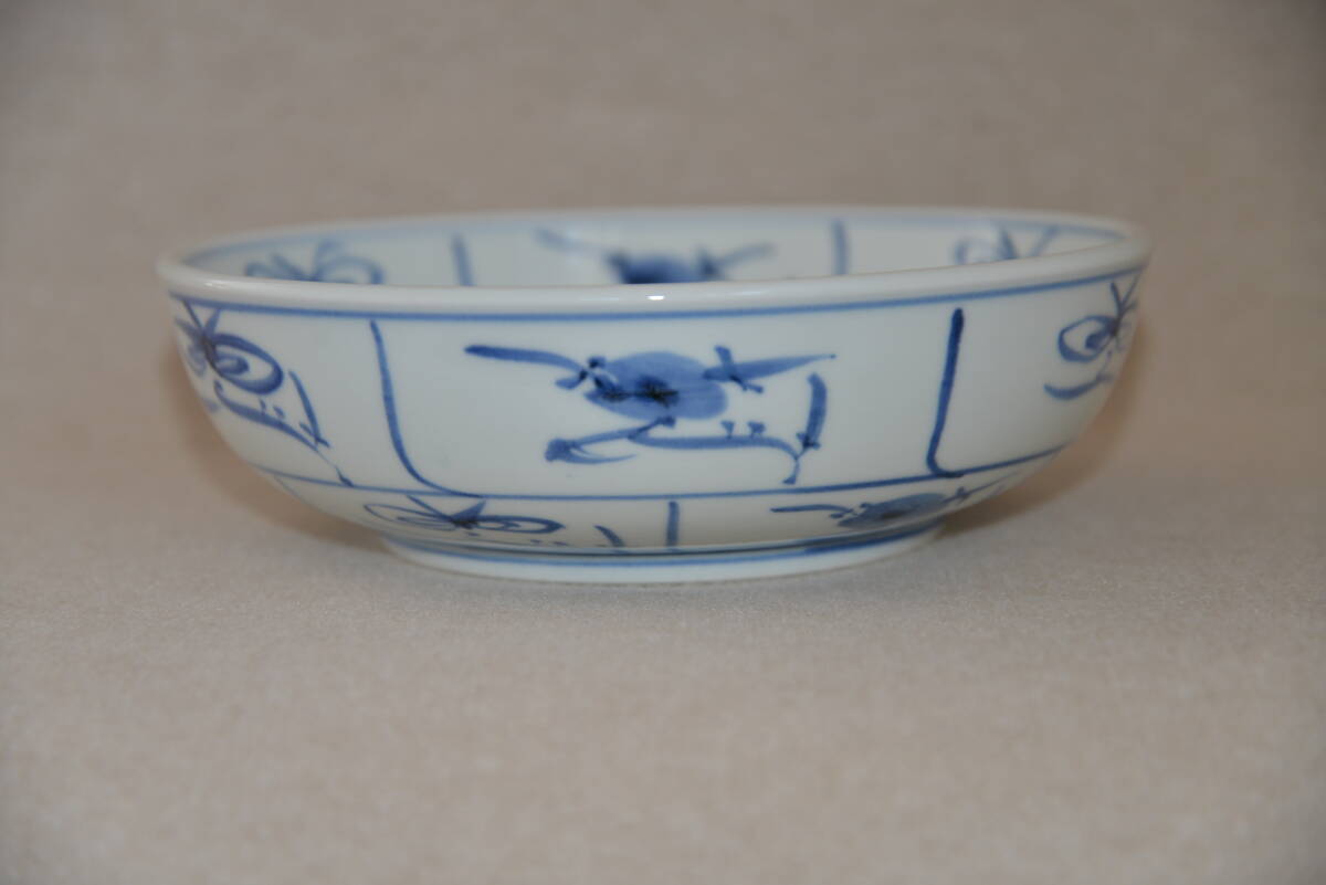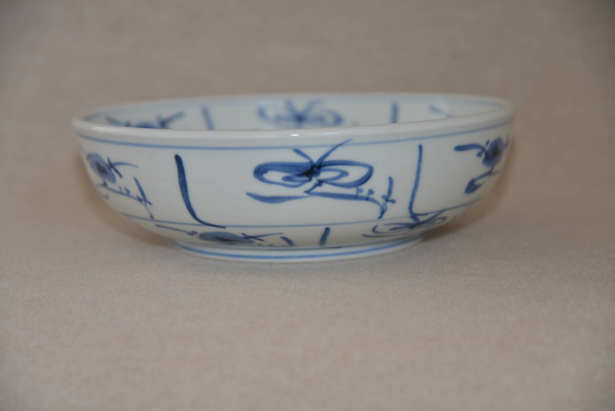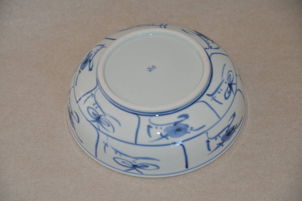 砥部焼 梅山窯 染付鉢 呉須唐草紋鉢 未使用 無傷 幅23cm 高さ7cm 共箱 | ||