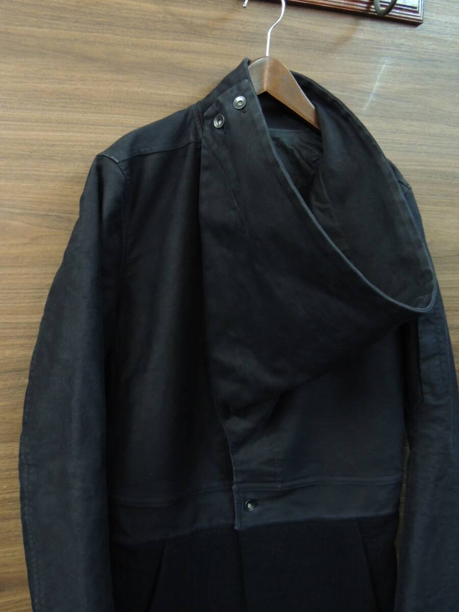 ★ 美品 Rick Owens リックオウエンス 10AW Gleam期 製品染め ブラック モールスキン カシミヤ 切り替え ドレープネック コート XSサイズ