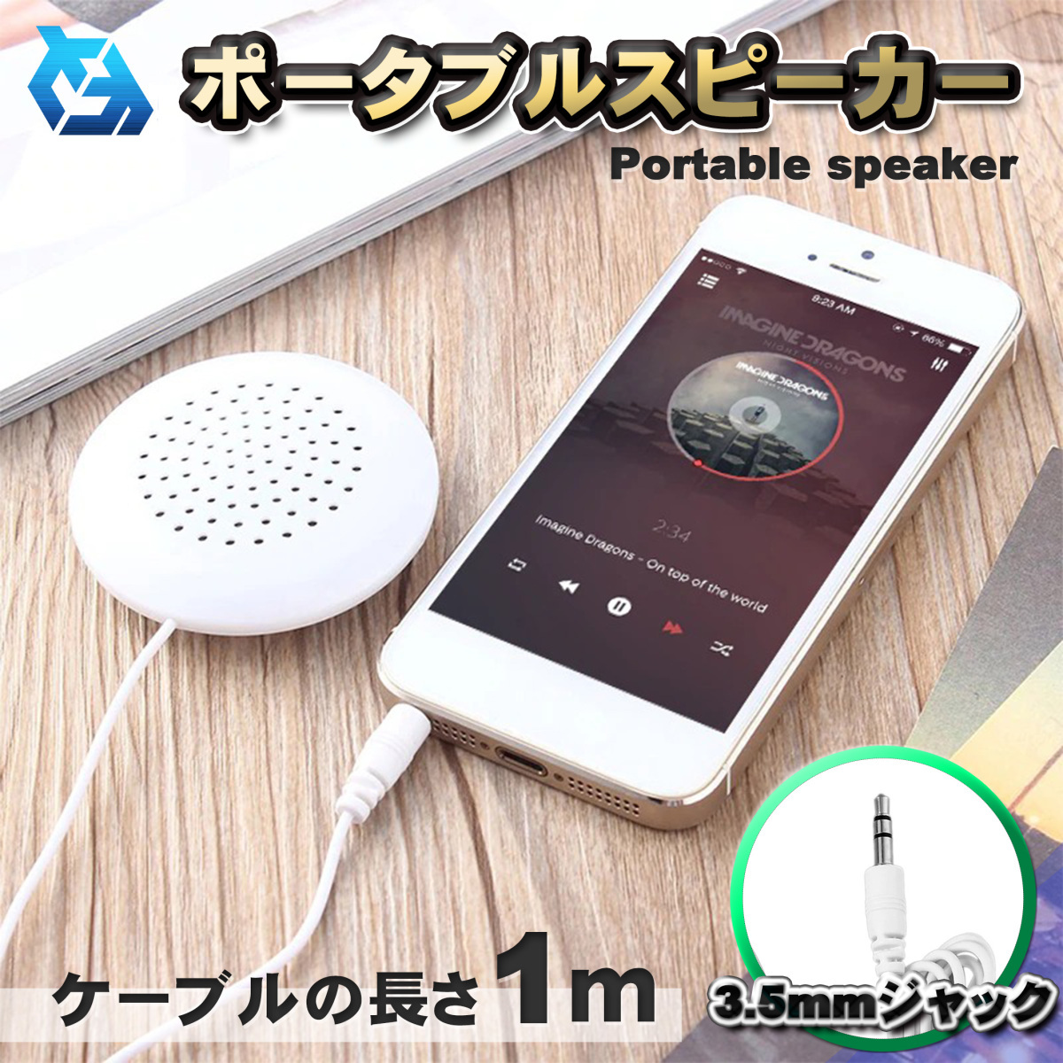 コンパクト ミニ ポータブル スピーカー 3.5mm イヤホンジャック タイプ 1メートル 【ホワイト】 電源不要 接続するだけで使用可能