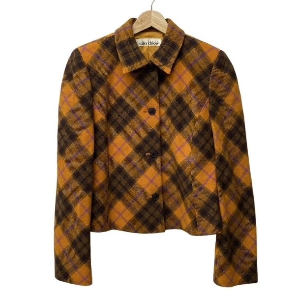 クロエ MISS CHLOE サイズ42 L - オレンジ×ダークブラウン×マルチ レディース 長袖/チェック柄/ラメ/秋/冬 美品 ジャケット