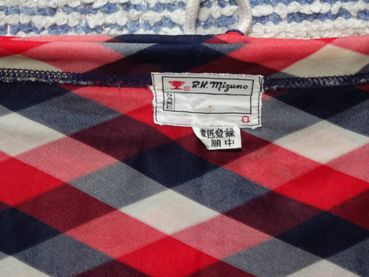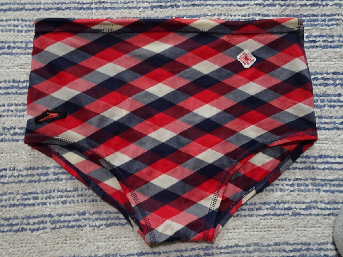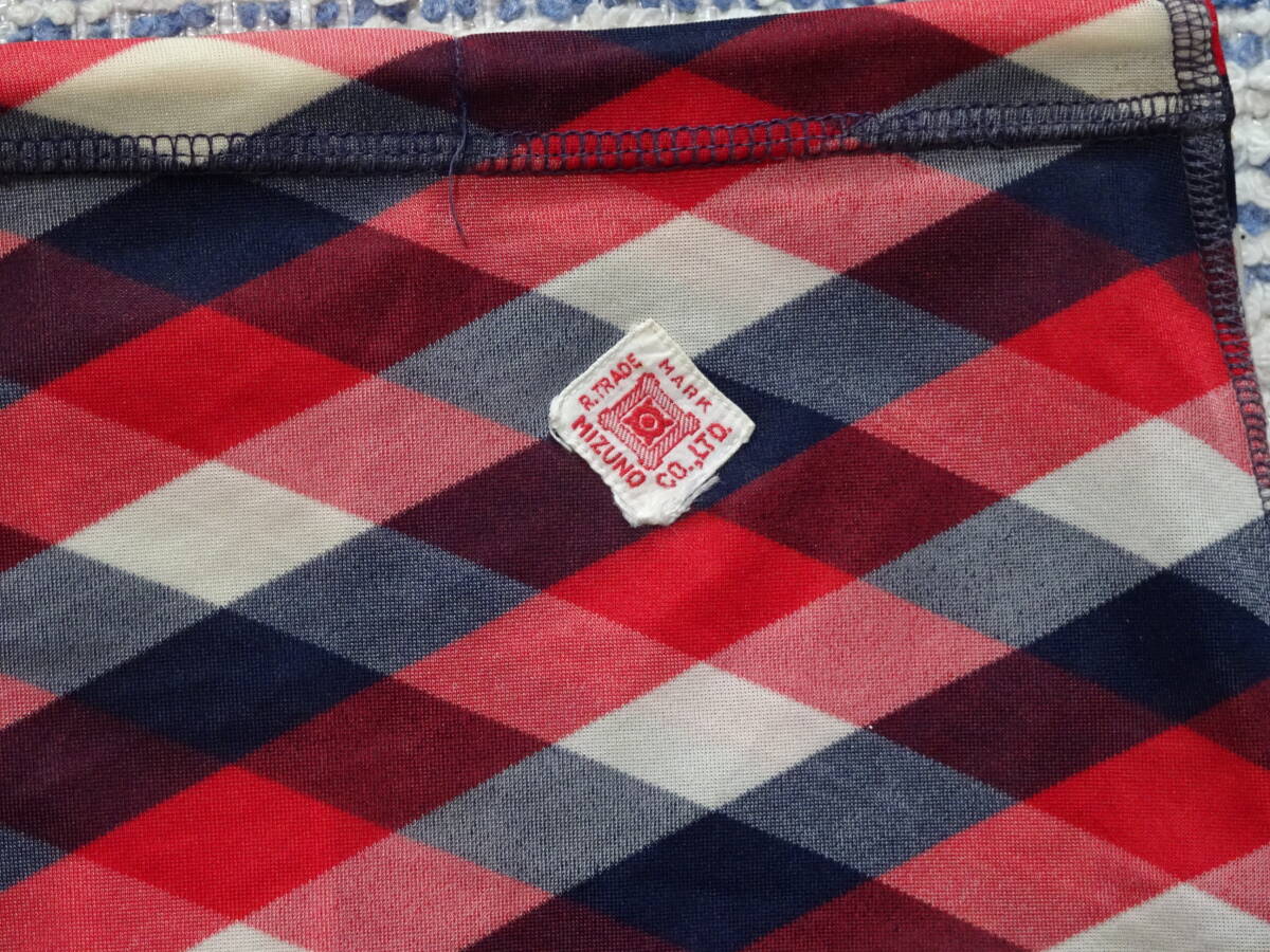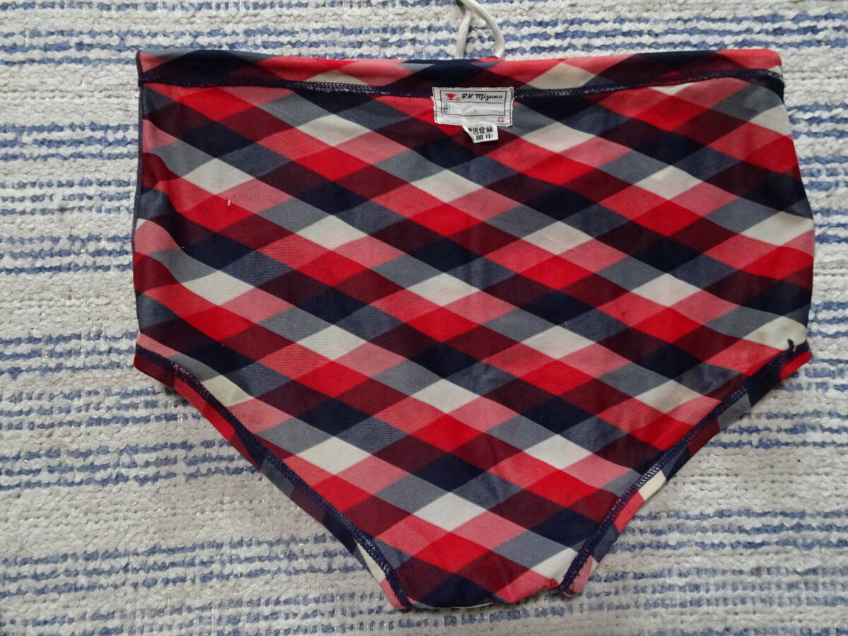 273 MIZUNOミズノ クラッシックスイムパンツ SizeLL レッド×ブラック×ベージュ×ネイビーのブロック格子柄デザイン 中古