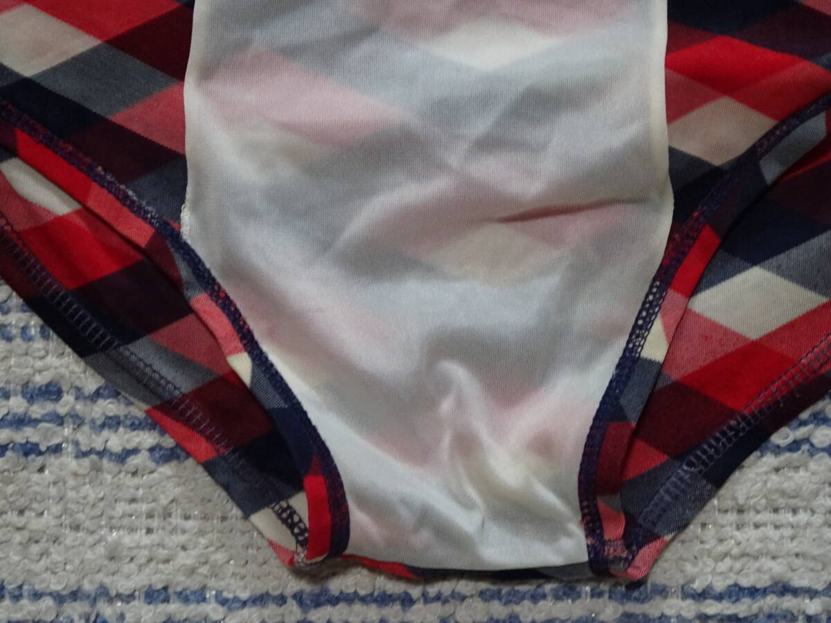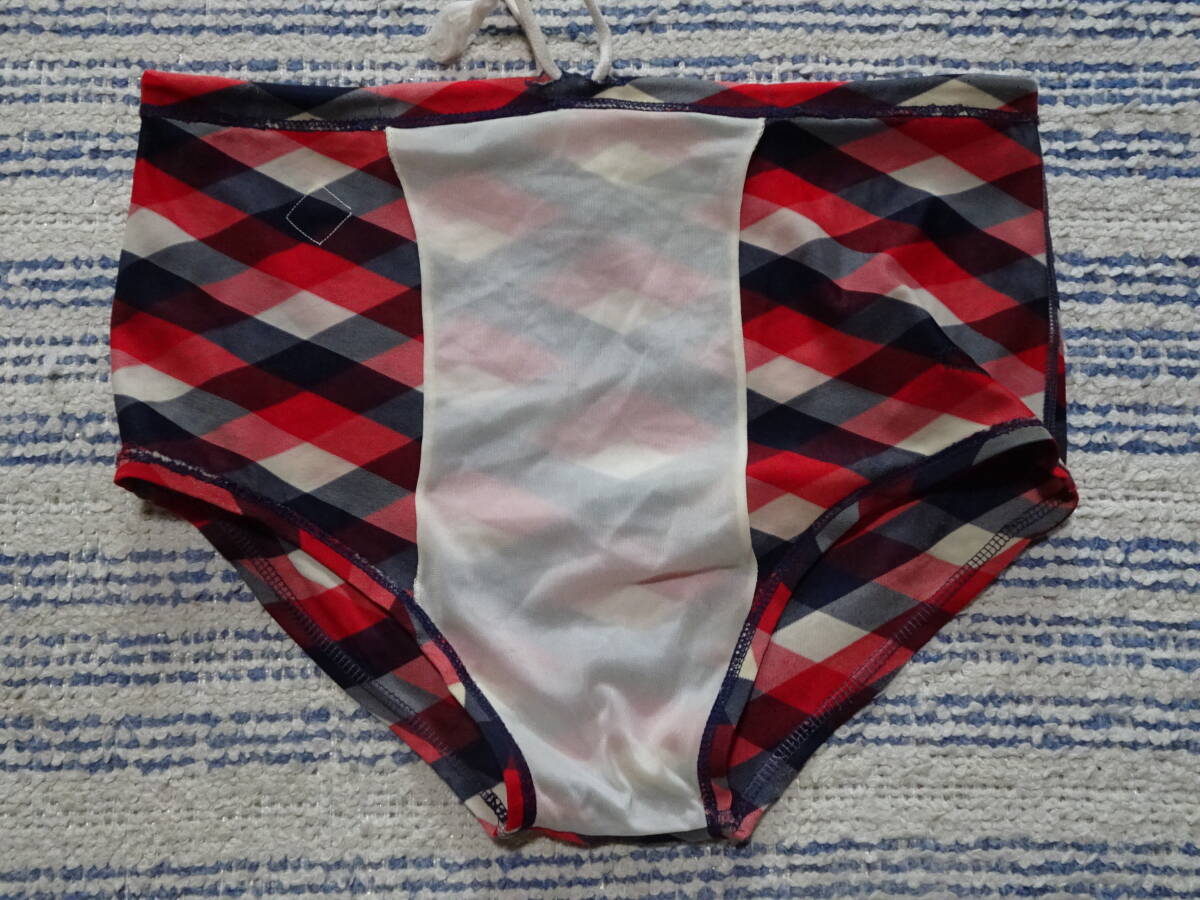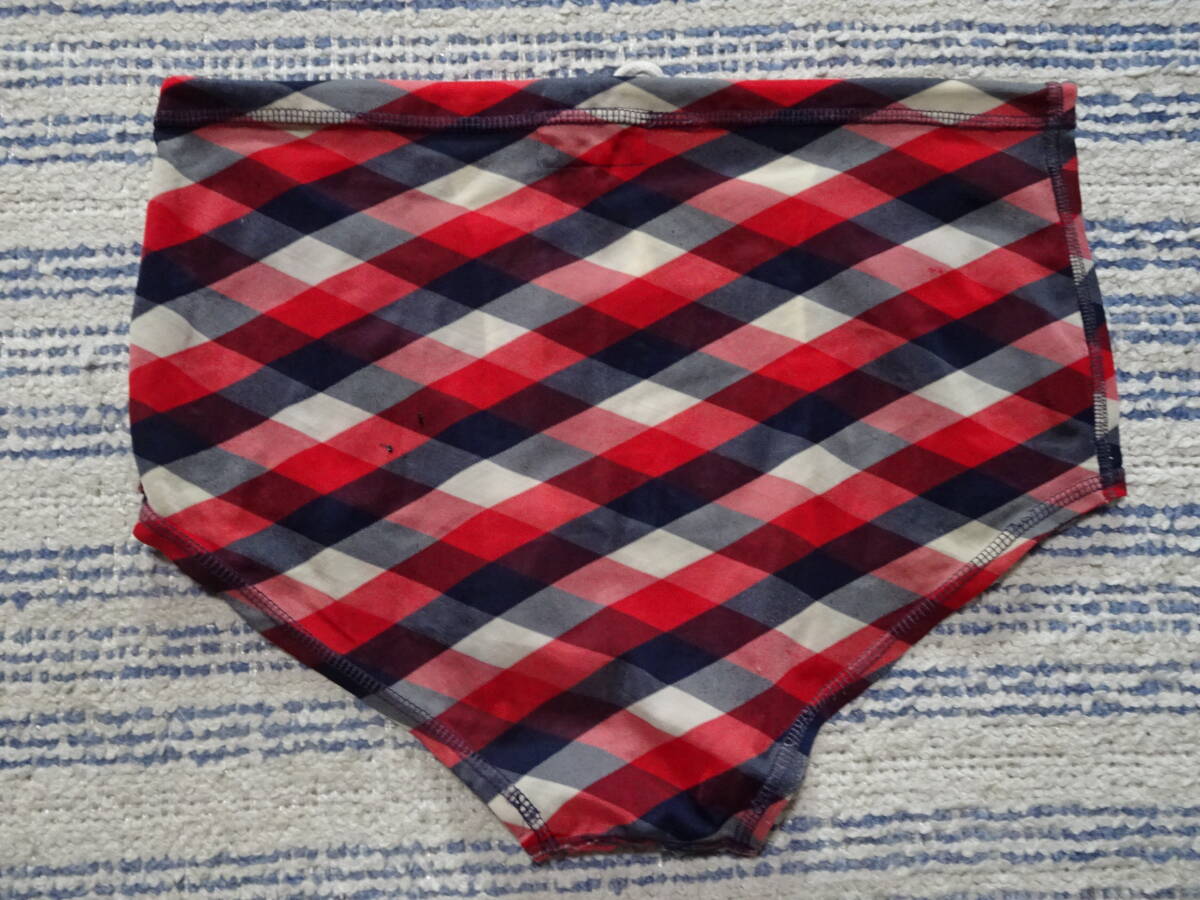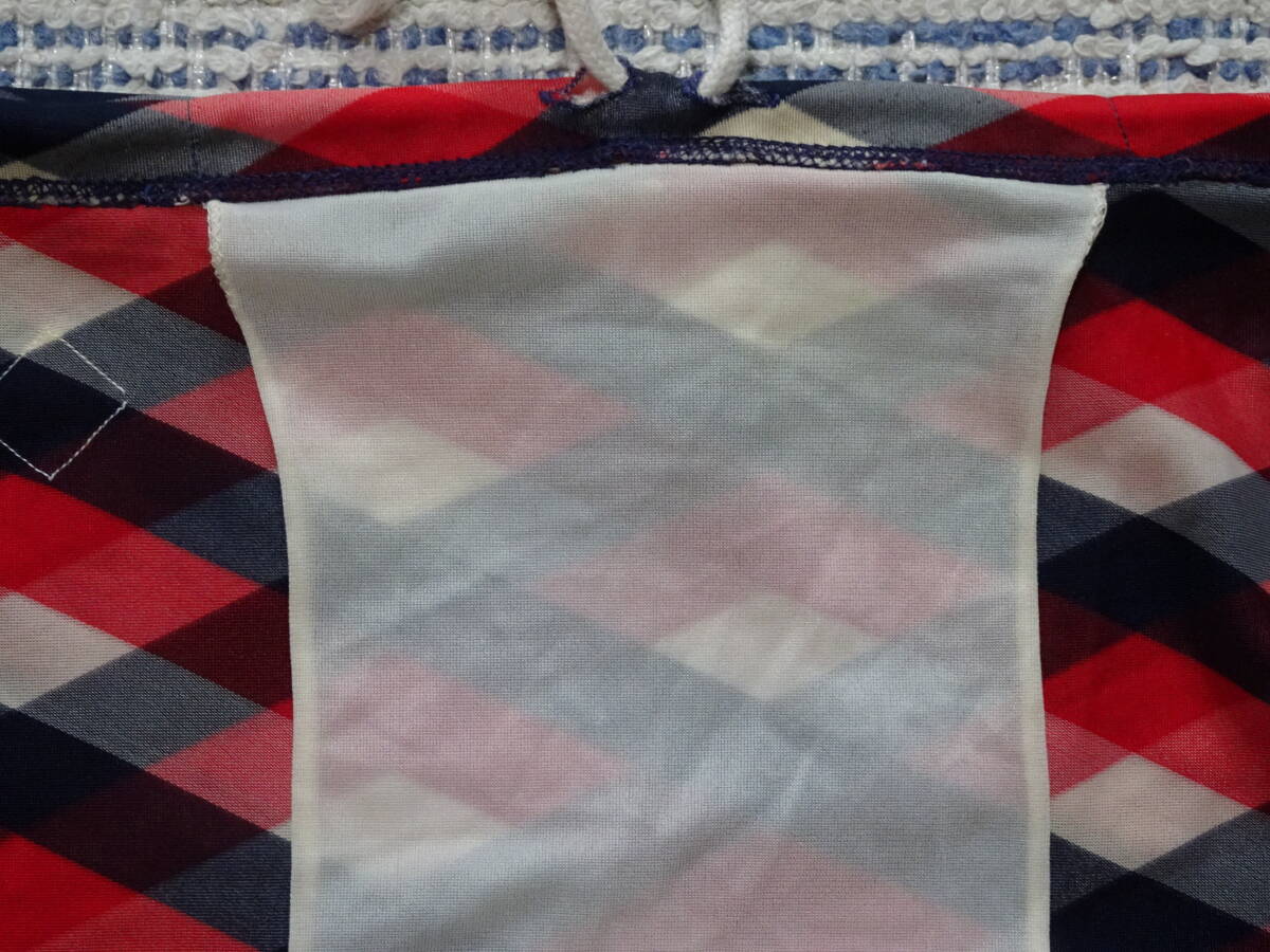 273 MIZUNOミズノ クラッシックスイムパンツ SizeLL レッド×ブラック×ベージュ×ネイビーのブロック格子柄デザイン 中古