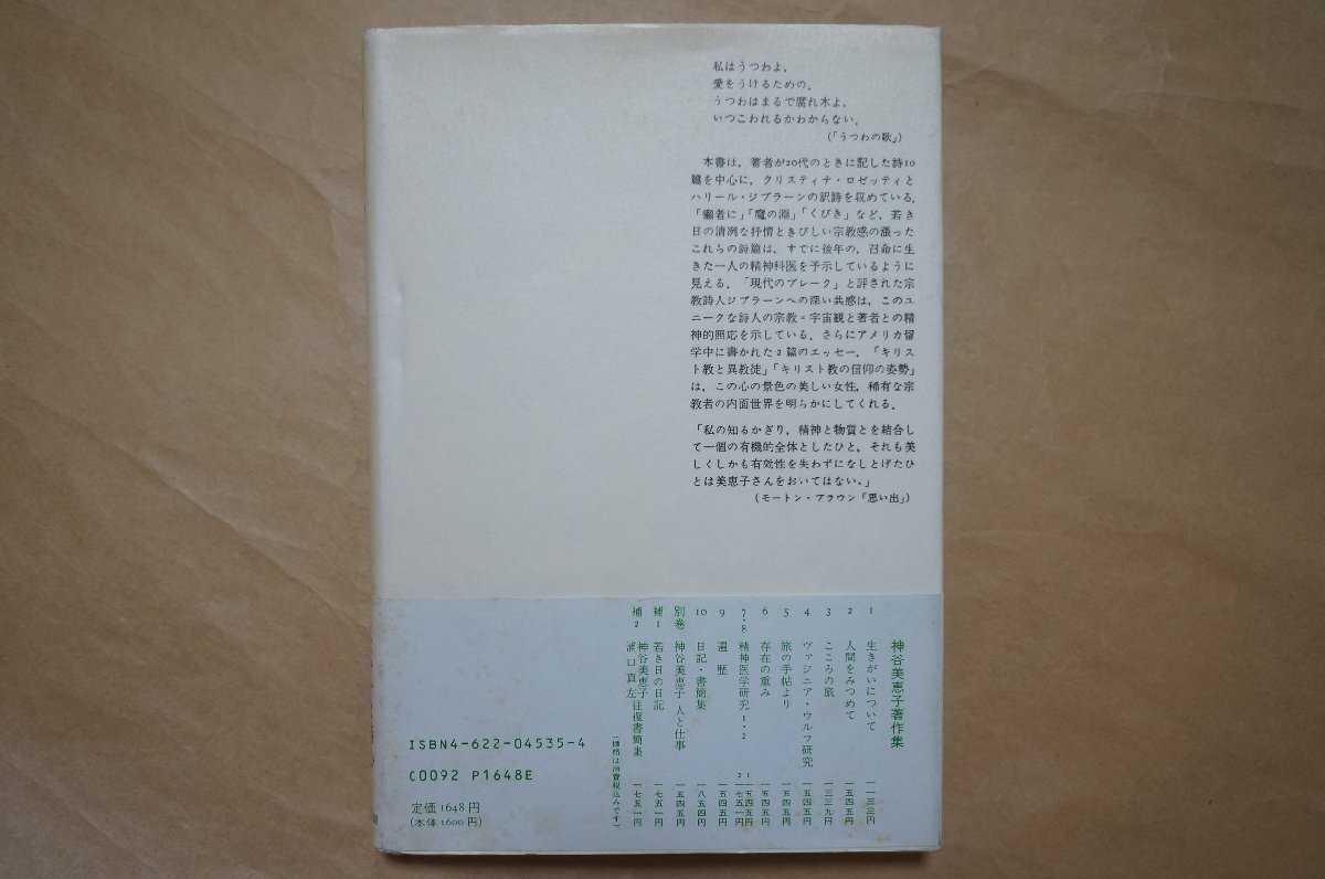◎うつわの歌 神谷美恵子 みすず書房 1993年|送料185円