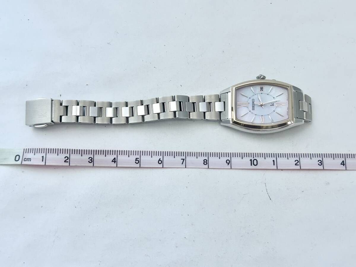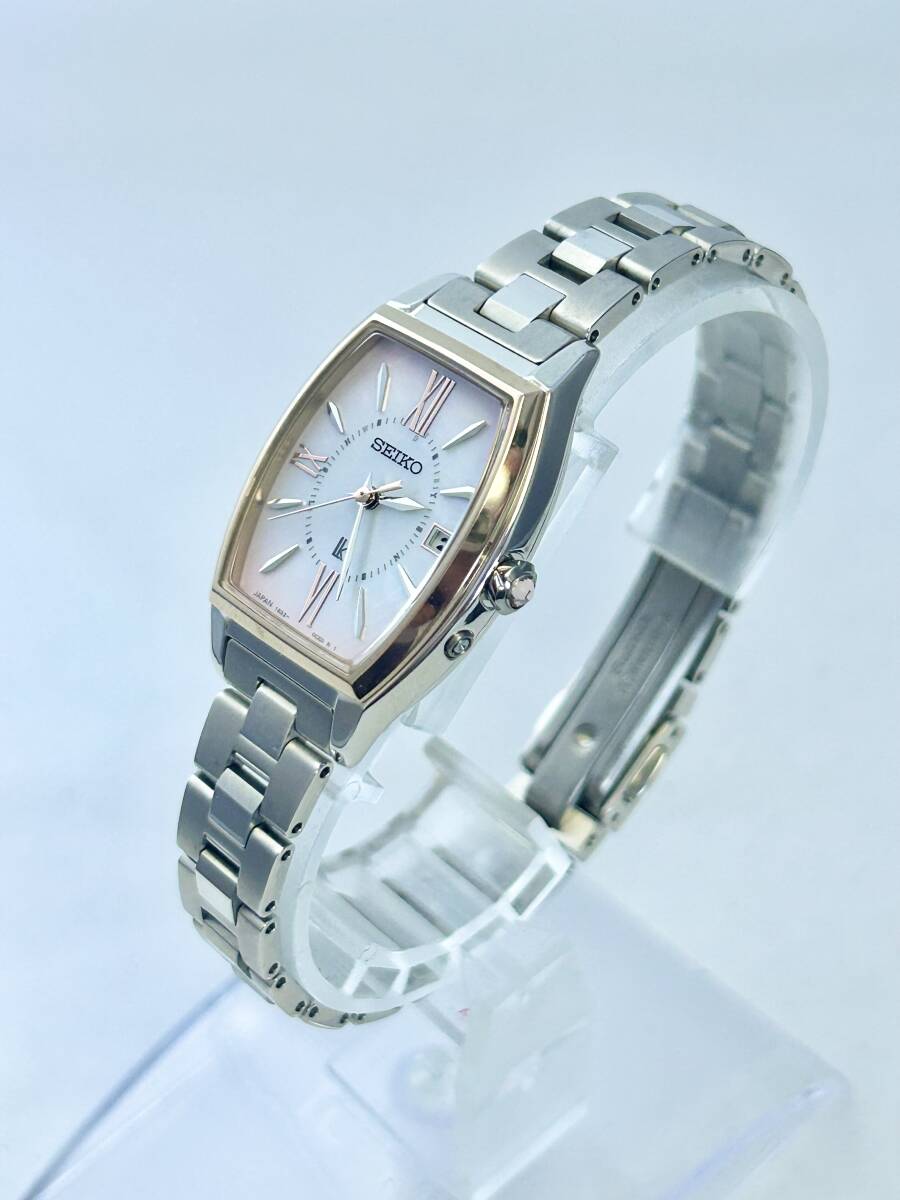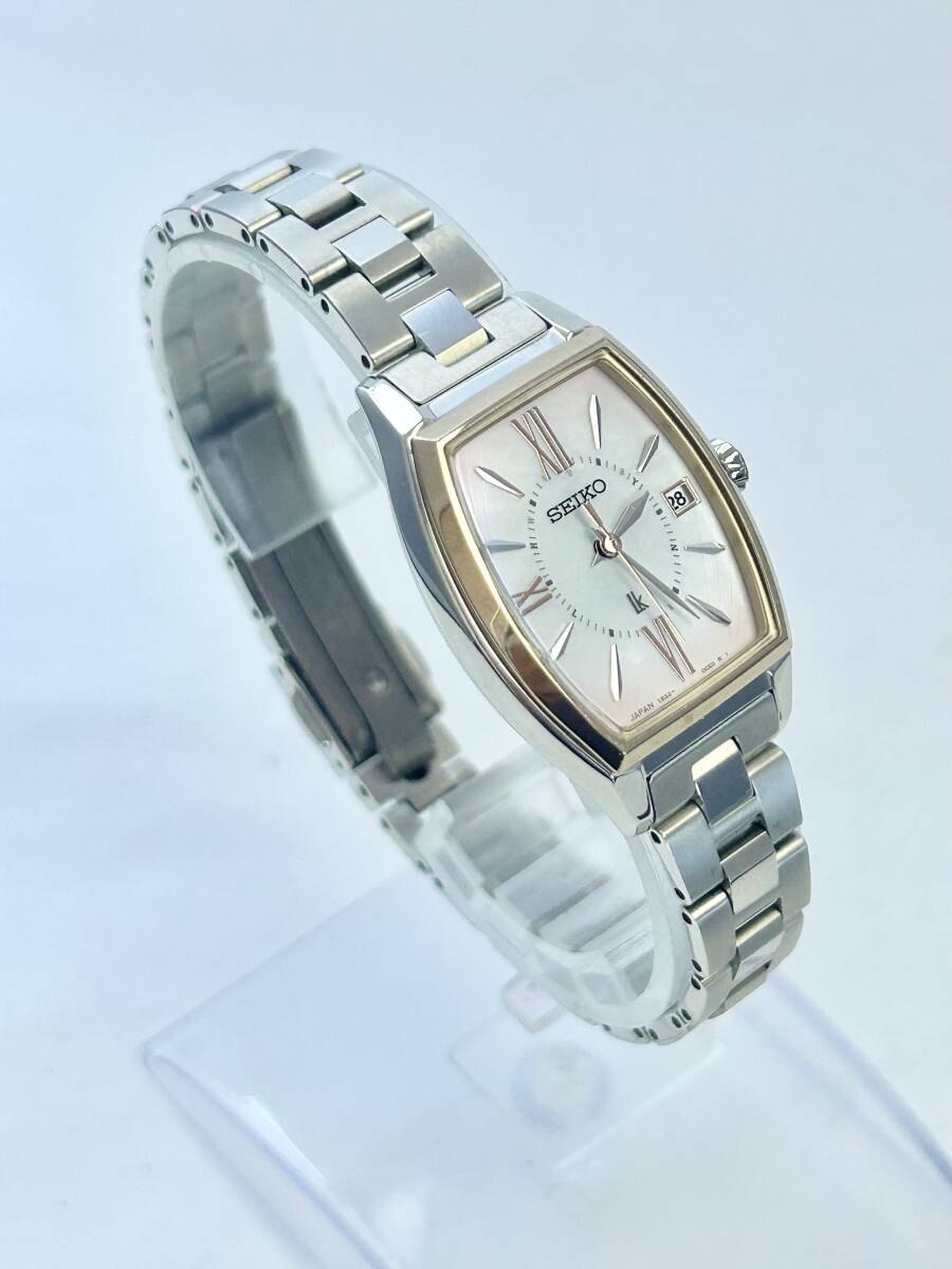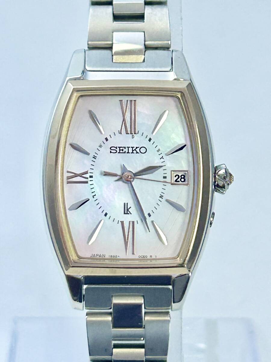 ML732【RUP】★1円~★ 稼働品 良品 SEIKO セイコー lk ルキア 1B32-0AX0 シェル文字盤 デイト スクエア 電波ソーラー レディース腕時計 | |||