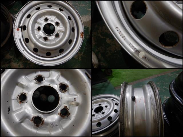 **** 商品説明を必ずご確認ください **** 部品管理番号:251028000747210 メーカー純正品番:99654-64540 部品名:ホイール 部品メーカー品番:99652-03520 部品区分:リサイクル品 管理品番:369416 車名:ボンゴ 車両タイプ名:5DBOXバン 通称型式:SKP2V 認定型式:ABF-SKP2V 年式:2014年10月 グレード:DXワイドロー 2人 1T 車台番号:SKP2V-21**** カラー:クールホワイト カラーNo:A2W トリムNo:SC8 エンジン型式:L8 シフト:4CT 排気量:1800 走行距離:171237 傷:[フロントインチ数,14インチ][フロントJ数,4.5J][フロント穴,5穴][フロントPCD,114.3][リアインチ数,12インチ][リアJ数,3.5J][リア穴,4穴][リアPCD,150] 備考1:6本/リアダブルタイヤタイプ/錆+傷有/要画像部品管理情報 部品管理番号 251028000747210 部品メーカー メーカー純正品番 99654-64540 部品名 ホイール 部品メーカー品番 99652-03520 メーカー代替品番 部品区分 リサイクル品 部品マイナー 管理品番 369416 部品カラー 部品情報 備考 6本/リアダブルタイヤタイプ/錆+傷有/要画像