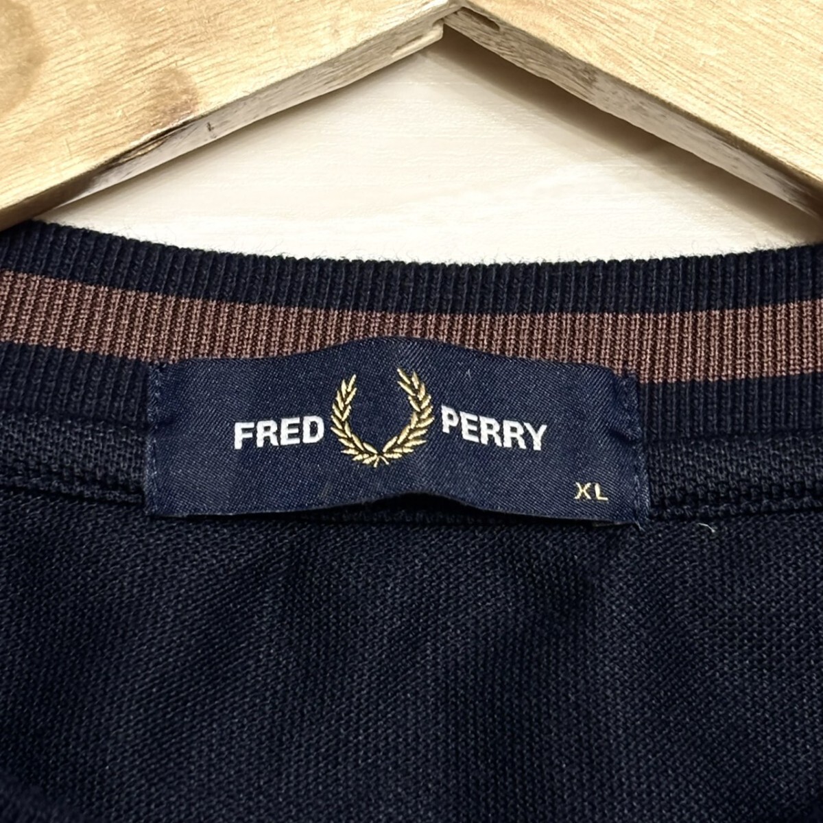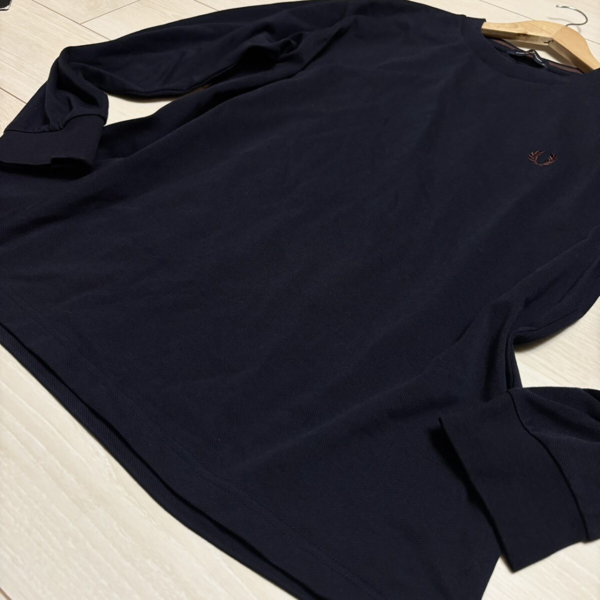 極美品/XLサイズ●FRED PERRY フレッドペリー 鹿の子 長袖 カットソー ロンT ワンポイント ローレルマークロゴ刺繍 ロングスリーブTシャツ