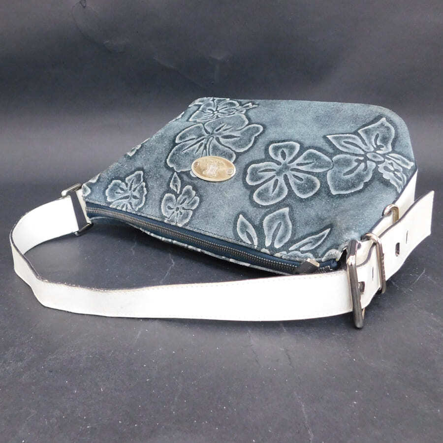1円■セリーヌ/ハンドバッグ/グリーン×ホワイト系/スエード×レザー/ブランド/通勤/CELINE ■E.Csl.tI-10[中古]