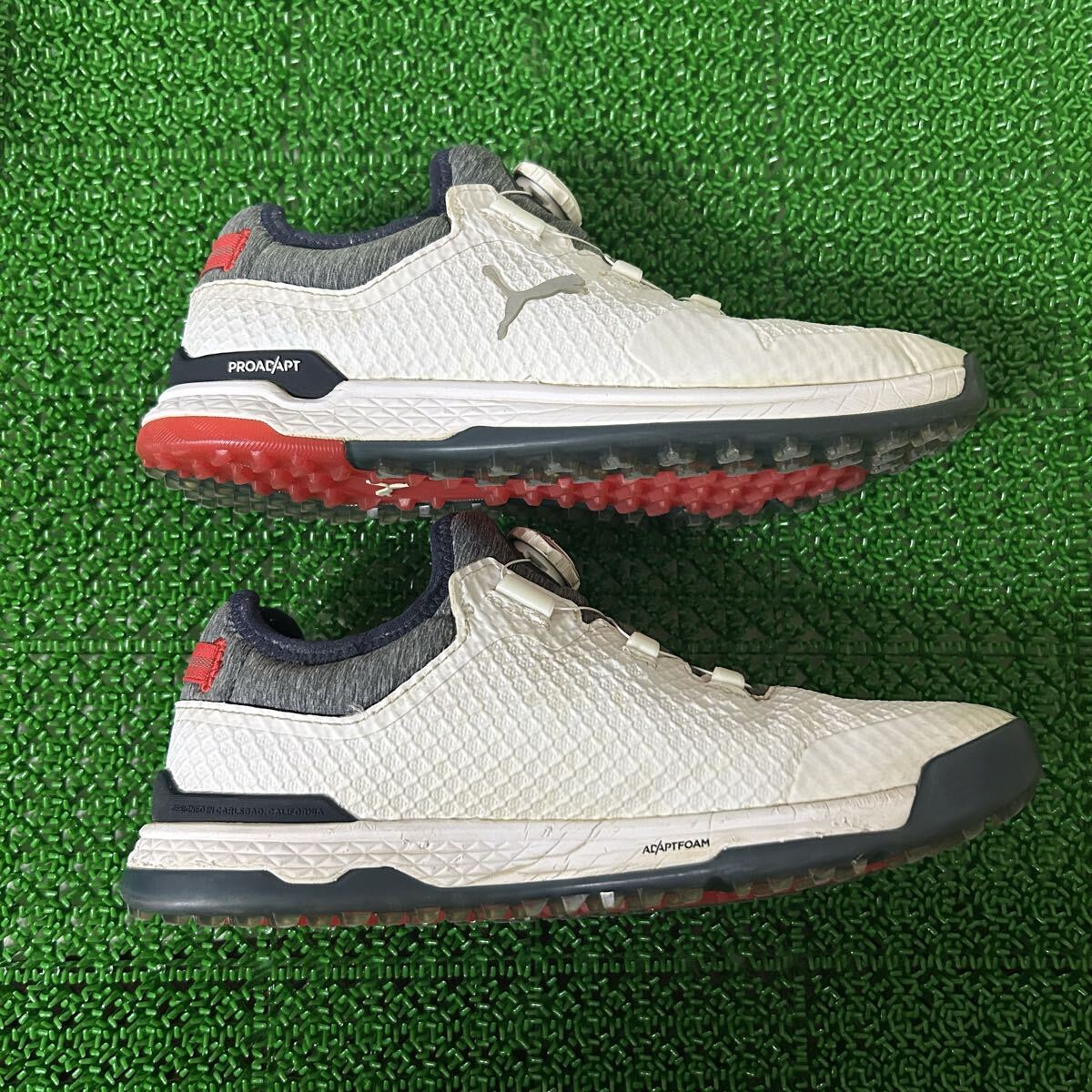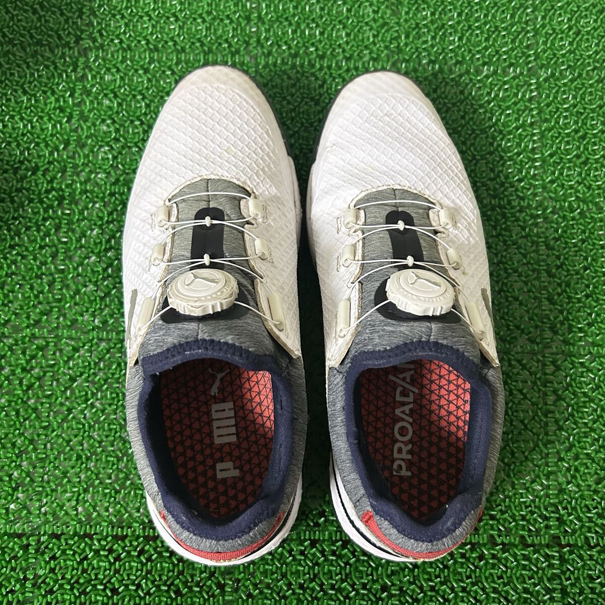 プーマ PUMA プロアダプトアルファキャット シューズ ブランド:PUMA [プーマ] ゴルフシューズ プロアダプト アルファキャット メンズ ブランド:PUMA 比較的綺麗ですが、画像最後、右足の踵付近が少し破れております。使用には問題ないかと思われますが、その点をご了承の上ご落札ください ※必ず写真をご確認いただき、入札のご検討をお願いいたします。商品につきましては、写真がすべてになります。 商品の状態を詳しくお伝えすることが出来ませんので、状態に神経質な方の入札はご遠慮ください。 画像をよくご覧になって判断いただき、気に入っていただけましたら、ご理解の上、ノークレーム・ノーリターン賣家不提供退貨賠償等責任 でお願いいたします。 ※個人保管のものですので、専門店並みの綺麗な商品をお探しの方また神経質な方は、御遠慮下さいます様お願い致します。 ※専門家ではないため、商品の細かな部分の状態や欠陥を見落とす場合がございます。御心配がございましたら、入札前に質問にてお聞きください。 落札、商品到着後のクレームは一切対応いたしません。 ・ご落札から原則丸1日間経ちましてもご連絡が無い場合、もしくは3日経ちましてもご入金の確認が取れない場合には、再出品のため削除させていただく事があります。 諸事情がある場合には、落札後取引連絡にてお知らせください。 ・入金確認から発送まで、~3日間のお時間が掛かる場合があります。 ・記載されている発送方法以外での取引には一切応じかねます。 ・商品発送後の発送トラブルなどは、落札者様と運送会社でおこなってください。当方は関与いたしませんのでご容赦ください。 ・入札後のキャンセルはお断りしております。よく画像及び説明文をお読みになりご考慮の上ご入札下さい。 ・商品をご理解の上、またすり替え防止の為、ノークレーム、ノーリターンでお願い致します。 またノークレーム&ノーリターンの意味をご理解いただける方の入札お願いします。 ・領収書の発行はおこなっておりません。ご了承ください。 ※上記内容をご理解・ご納得された方のみ入札をお願い致します。 >