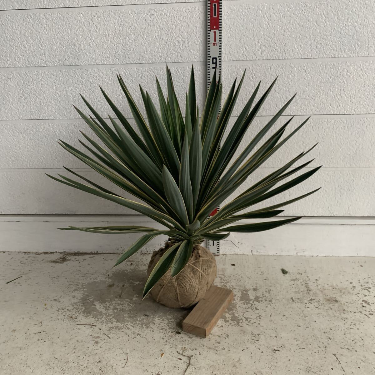 最近、ご落札後のお客様都合での問い合わせが増えています。 下記の注意事項をご了承いただける方のみ、ご購入ください。 【ユッカ グロリオサ バリエガータ】 Yucca gloriosa variegata 読み:ゆっか ぐろりおさ ばりえがーた 樹高:約 80cm (根鉢を含めての高さです。) 撮影日:2025/11/07 =============== ユッカ・バリエガータは太い幹と上を向いた肉厚のシャープな葉が特徴的。 寒さにあたると葉の斑の部分が赤みがかってカラフルな色あいになります。 マイナス3度まで耐えられる耐寒性を備えていて、 乾燥にも強く育て方が簡単で初心者には育てやすい植物です。 また、新芽が次々と出ることから、 風水では「金運」や「仕事運」が高まるとされています。 風通しと日当たりのよい場所を好みます。 日陰でも育ちますが、しっかりと日に当てた方が元気に育ちます。 また、水やりは控えめに管理してください。 ============= 佐川急便・ラージ便 ★北海道、各都道府県・離島はプラス料金になります。 送料を確認したい方はお気軽にご質問下さい。 【注意事項】 植物・生き物のため、以下の点につきましてご理解・ご了承の程宜しくお願い致します。 全て、写真のもの、現品発送いたします! ・到着後、すぐに開封してなるべく早くお水をあげてください。 ・梱包には、十分に注意いたします。植物の葉が傷まない程度に梱包しますが、柔らかい先端部は多少曲げての梱包です。 葉っぱの向きなどクセがつく場合がございますが、数日で元に戻ります。 ・葉の傷み・幹の傷などあるものもございますが、成長には問題ありません。 ・梱包・輸送時の小枝の折れ、落果など、梱包時に多少剪定する場合もございます。 ・贈答対応できません。 【樹形の変化について】 生き物ですので、お届けまでの間に成長による樹形の変化がございます。 特に、撮影日より日にちが経っている商品につきましては変化が著しいものもございます。 気にされる方は先に、ご質問にてご確認をお願いします。 【返品・返金について】 基本的にはお受け致しません。 注意事項を含め、全てご納得いただいた上でご落札ください。 ご落札後に値段が高い等、お客様理由での対応は出来かねます。 配送事故があった場合に限り、対応できる案件もございます。 【高さについて】 壁に定規を置き、その前に植物を置いて撮影をしているため遠近感などにより、多少の誤差がございます。 全て現品発送ですので、高さは写真で確認をお願い致します。 【送料について】 植物の高さ、ボリュームで配送サイズが変わるため、値段もそれぞれ異なります。 そのため、送料のご連絡は落札後となります。 送料が気になる方は、先に必ず、ご質問にてご確認ください。 ご落札後の送料についての値下げ等は対応出来ません。 【時間指定について】 基本的に佐川急便での発送となります。 時間指定不可地域もあるようです。発送時に時間指定はお付けできますが、 発送後の問い合わせ(届かない・いつになるか等)は佐川急便の方へお願いします。 >