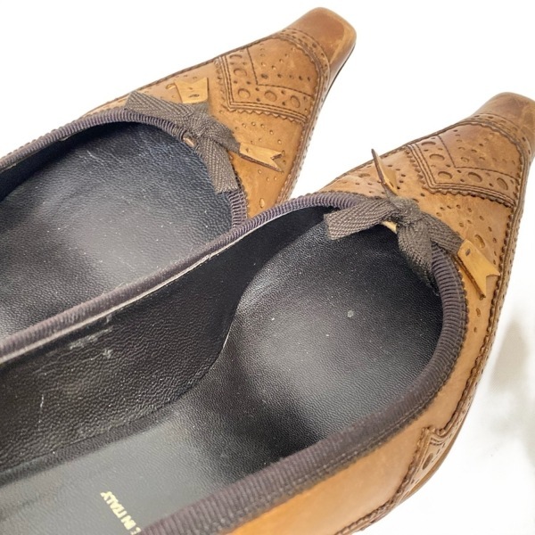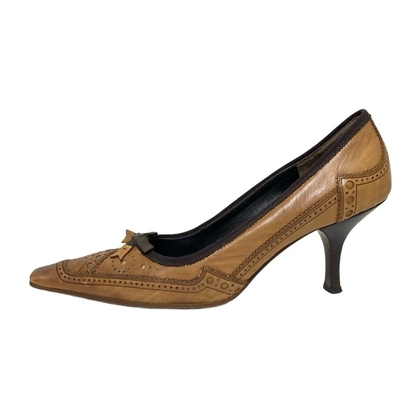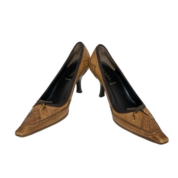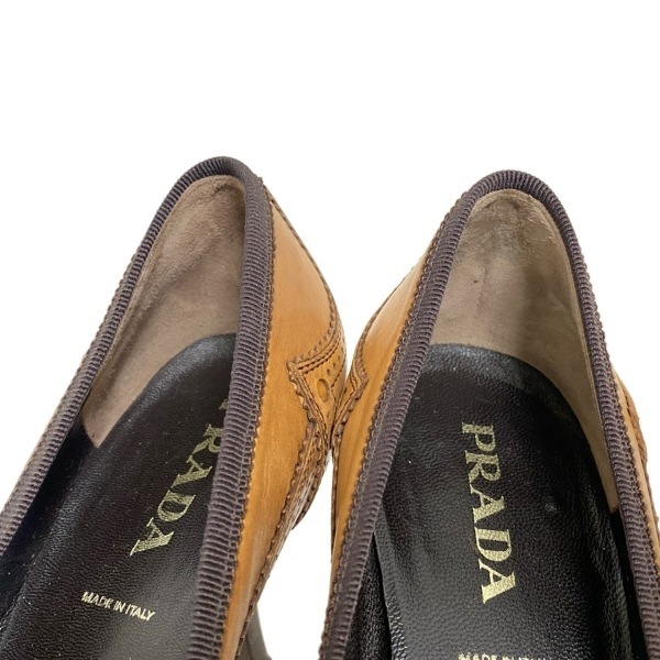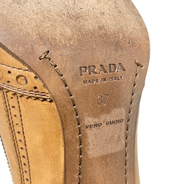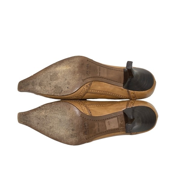 商品説明 ブランド:PRADA(プラダ) コンディションレベル:【5】使用感あり 表記サイズ:37 商品詳細 ジャンル:パンプス デザイン:ウィングチップ カラー:ブラウン 素材:レザー 男女別:レディース 付属品:箱、保存袋、替えリフトカラーについて 素材について 付属品について 実寸サイズ インソール(全長) : 約 26.5 cm (靴の全長となるためサイズではありません) ヒールの高さ : 約 7 cm コンディションの備考 【外側】 ・全体的 ⇒ 傷 / 汚れ / 変色/色褪せ / シワ(型崩れ) ・アウトソール(靴底) ⇒ 擦れ ・ヒール ⇒ 擦れ ・トゥ(つま先) ⇒ 擦れ 【内側】 ・全体的 ⇒ 汚れ / シミ / 擦れ 【特記事項】 ・本体 ⇒ ニオイ