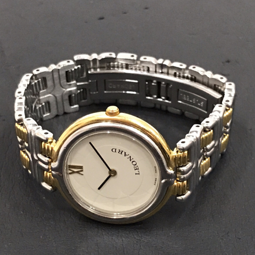 | 1円 レオナール 3203 クォーツ メンズ 腕時計 ラウンドフェイス 純正ベルト 保存箱付き 稼働品 LEONARD |