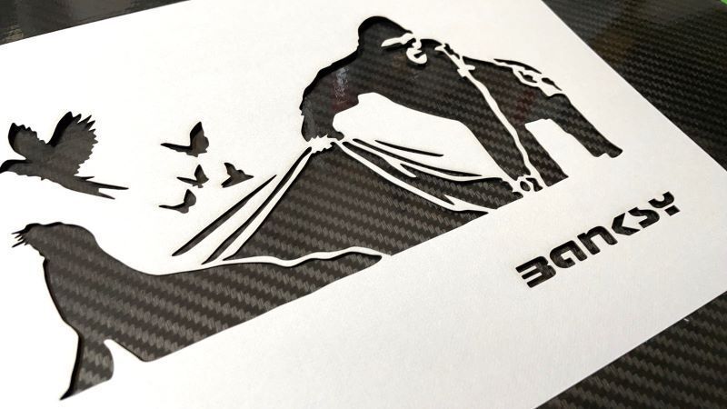 バンクシー【084】【ゴリラ アシカ 鳥 蝶 闇に潜む人間】【A4 厚紙】ステンシルシート オマージュアート BANKSY