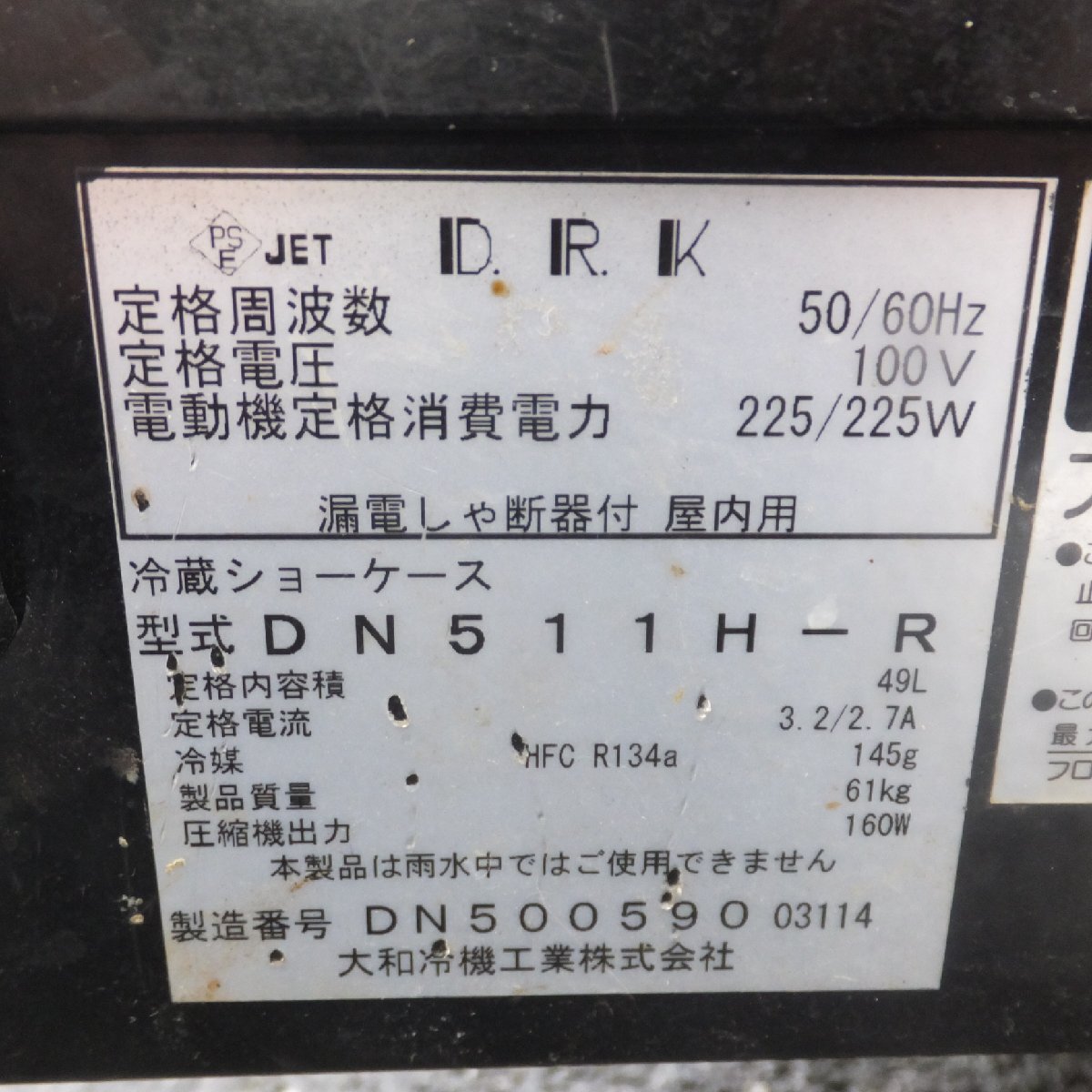 岐阜発 直接引取限定★大和冷機 ダイワ DRK 冷蔵ショーケース DN511H-R 定格内容積 49L 100V 50/60Hz★ | |||||||||||||||||||||||