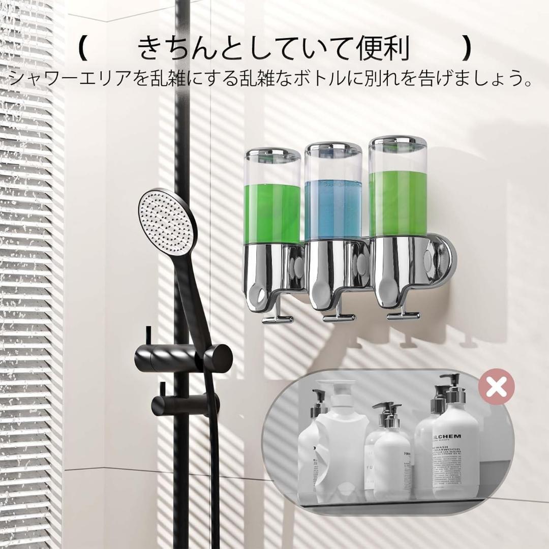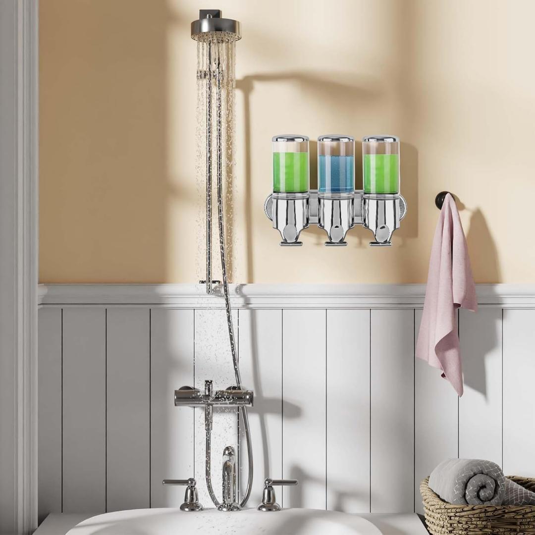 3室デザイン**: シャンプー、コンディショナー、ボディソープを個別のチャンバーに収納し、シャワーエリアを整理整頓。バスルームをすっきりと保ちます。