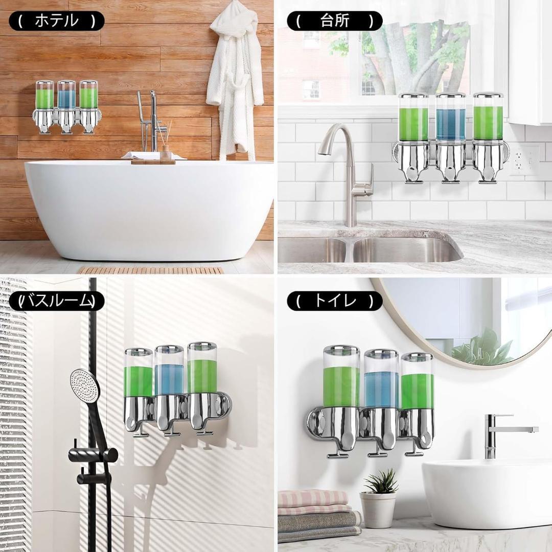 大特価ホテルライク壁掛け式 シャンプー ディスペンサー 3個 クリア