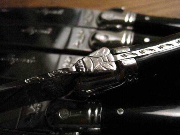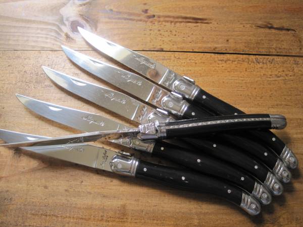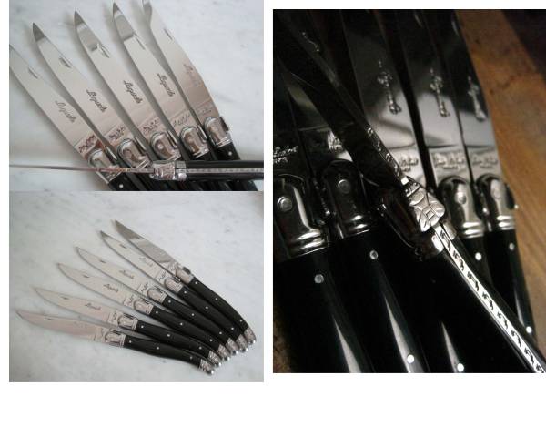 最高級2.5mm厚みステンレス幅フランス製Laguioleテーブルナイフ6本setラギオール黒色