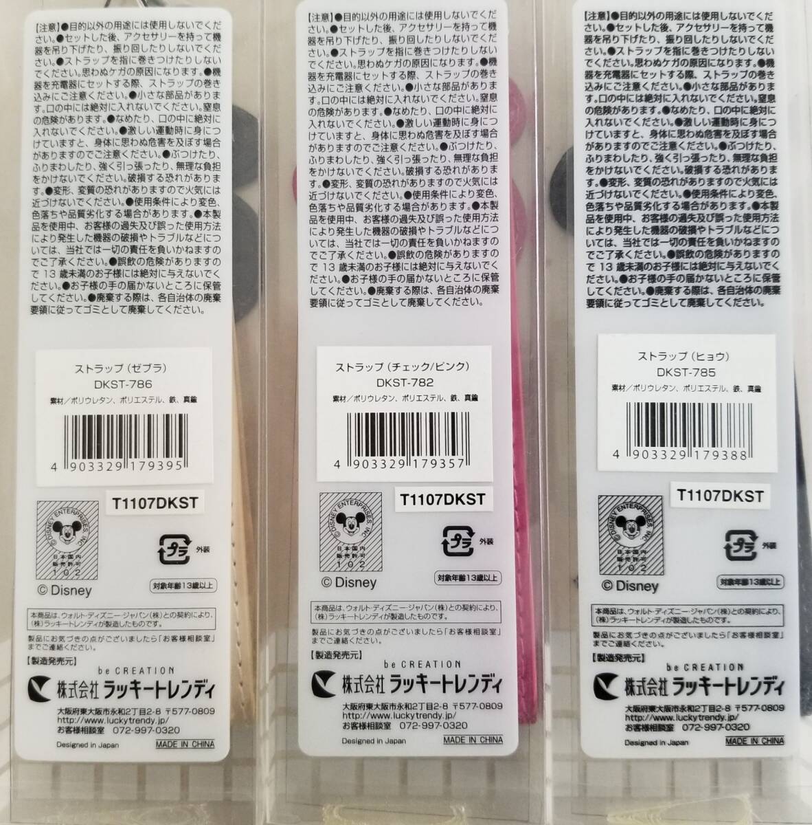 | Disney ディズニー ストラップ DKST-786 ミッキーマウス 携帯 スマートフォン カメラ ラッキートレンディー 未使用品 3個 まとめ売り | ||||||||
