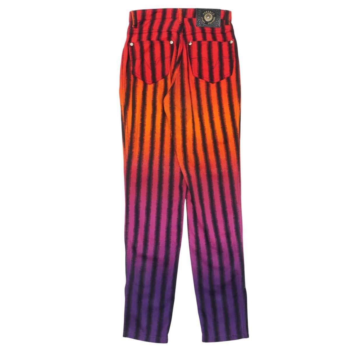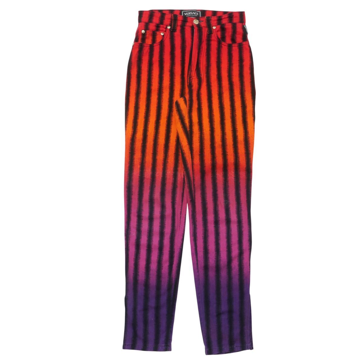 | GR7152☆ヴェルサーチジーンズ VERSACE JEANS COUTURE グラデ―ション ストライプ柄 テーパードパンツ レッド×パープル系 サイズ26 | |||