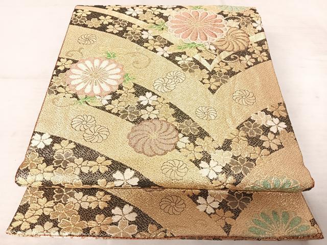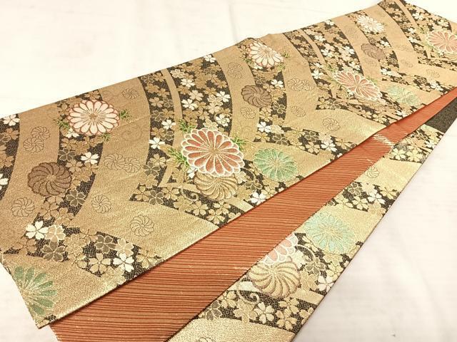 商品名稱 : 平和屋着物◎六通柄袋帯 舞花文 金糸 正絹 逸品 AAAS9857yx