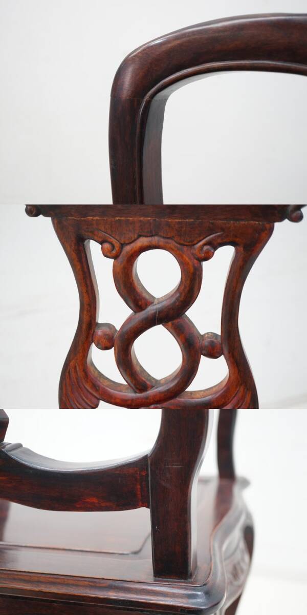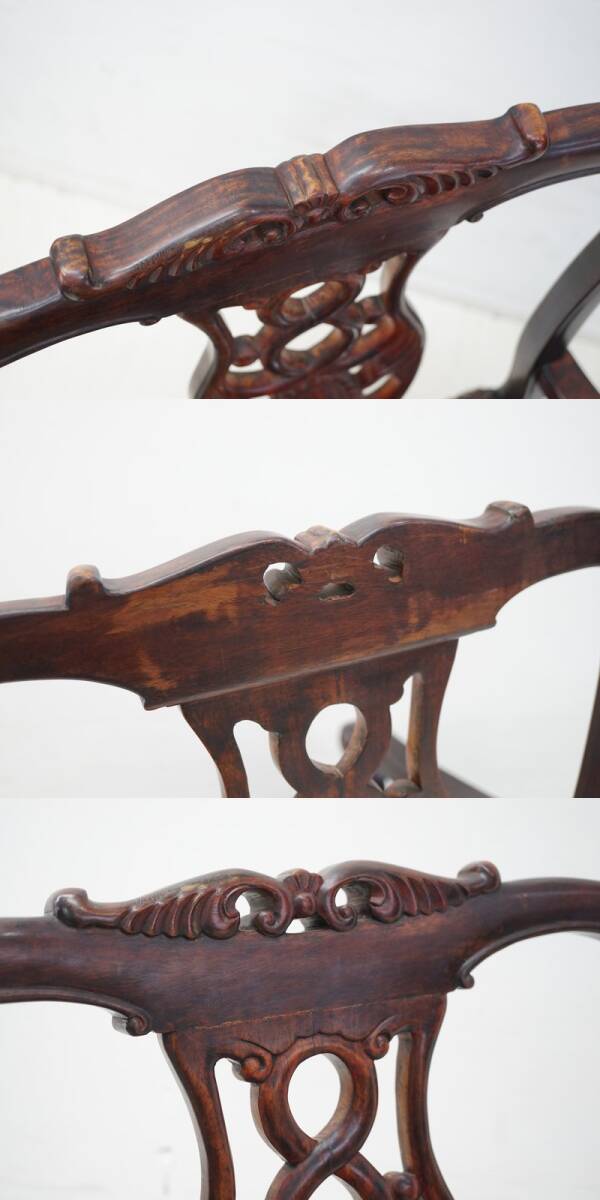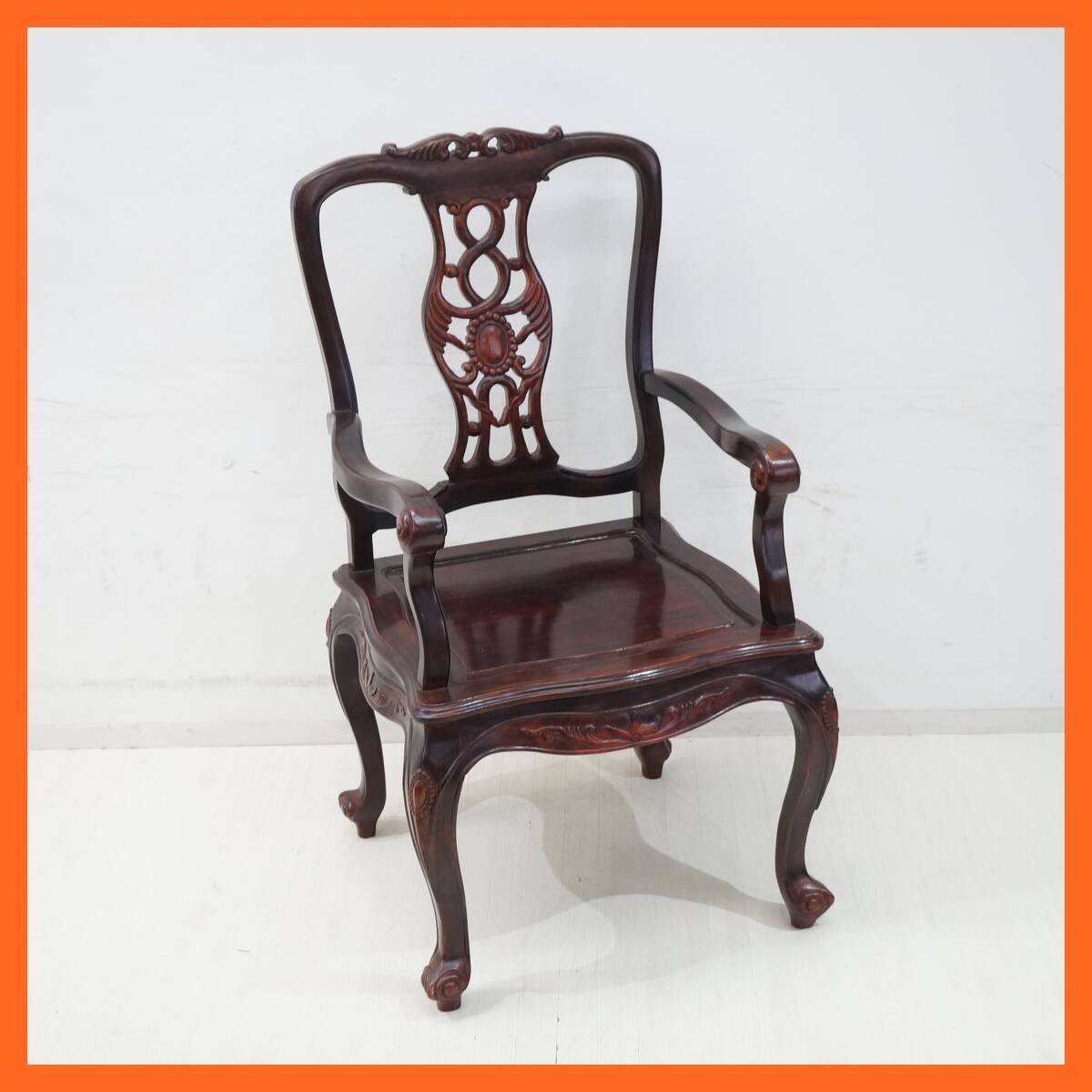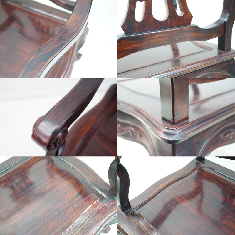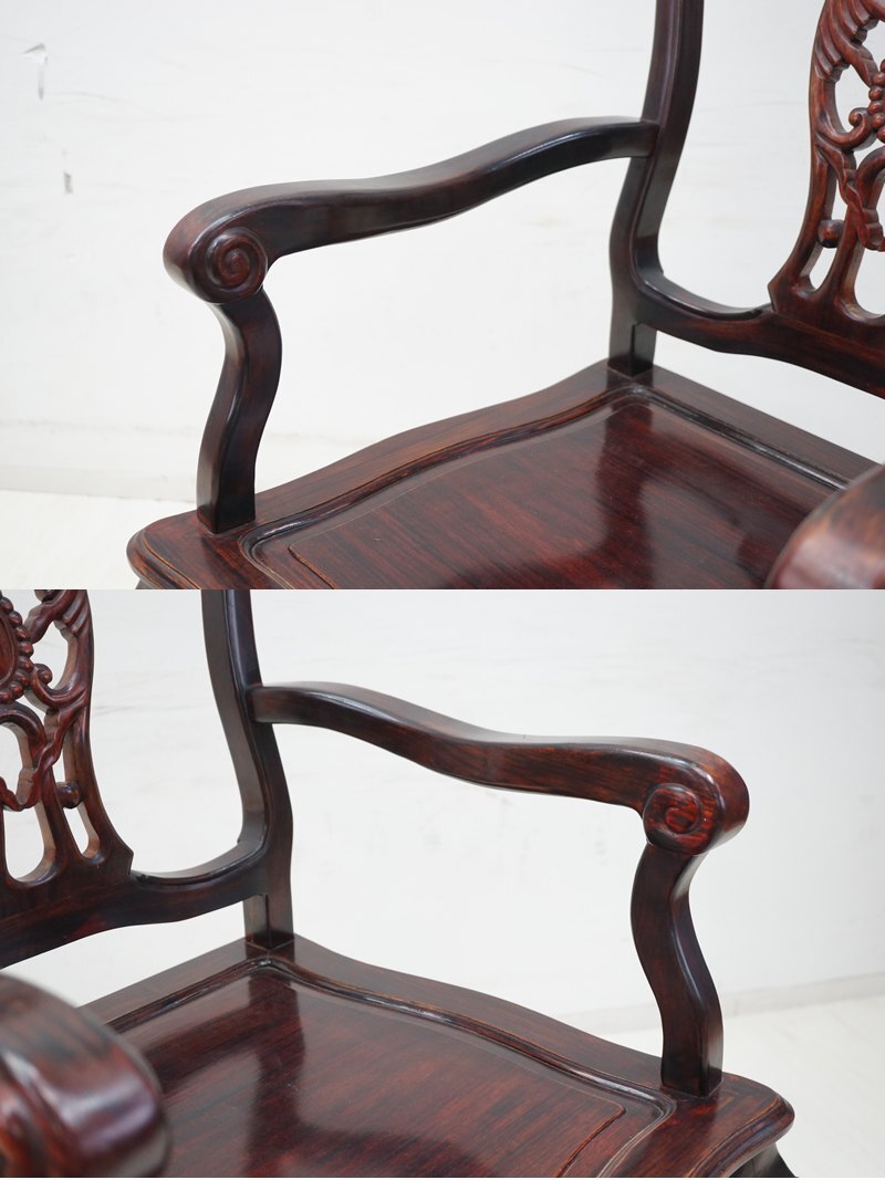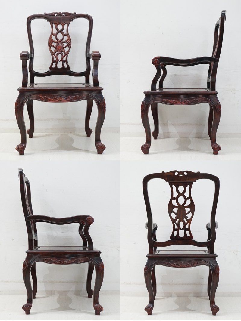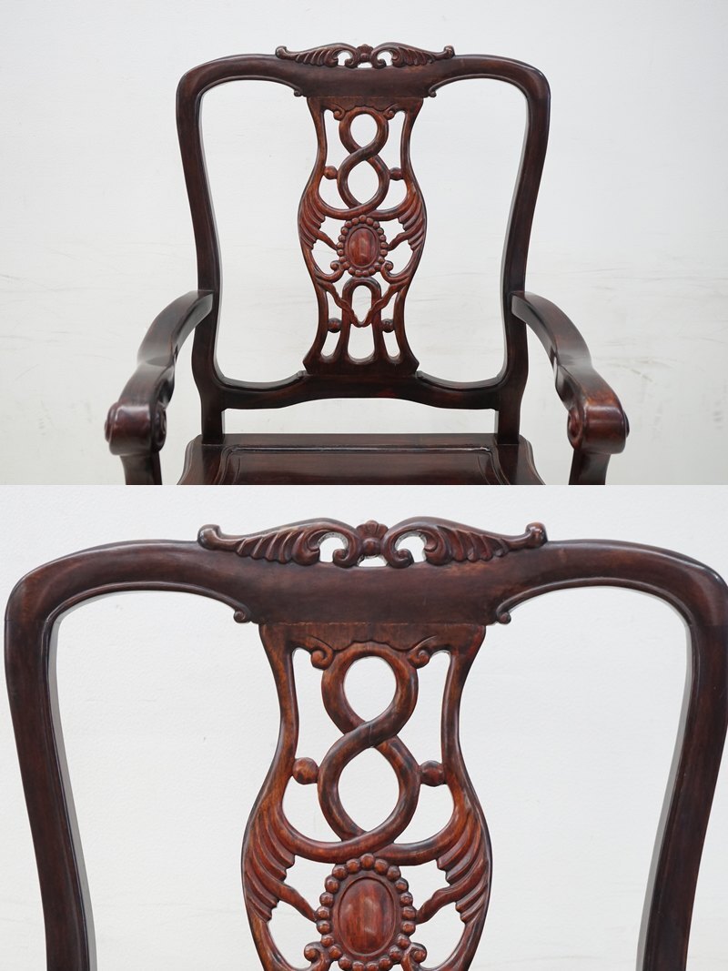 | 東ハ:【唐木家具】天然木 花梨 透かし彫り アームチェア ② カリン材 肘掛け椅子 ダイニングチェア 食卓イス リビング家具 ★送料無料★ |
