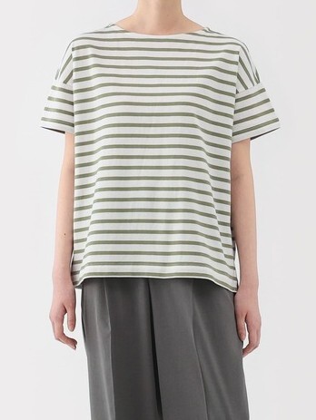 【無印良品】ボーダーボートネック半袖Tシャツ