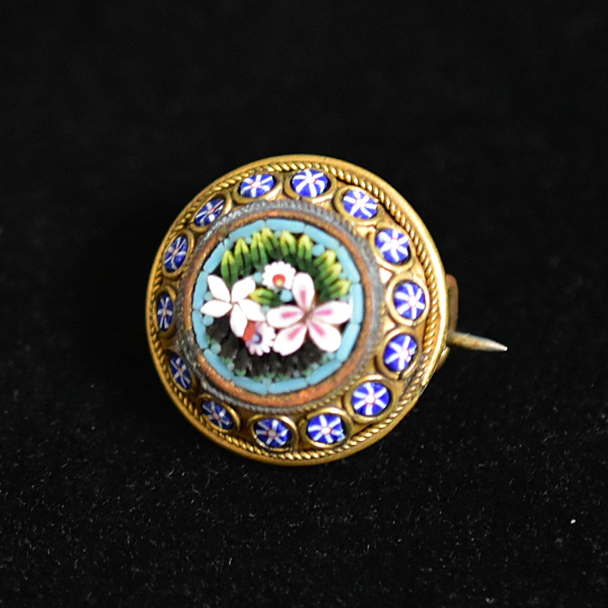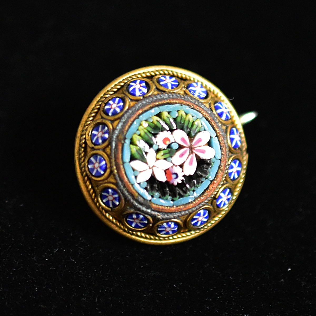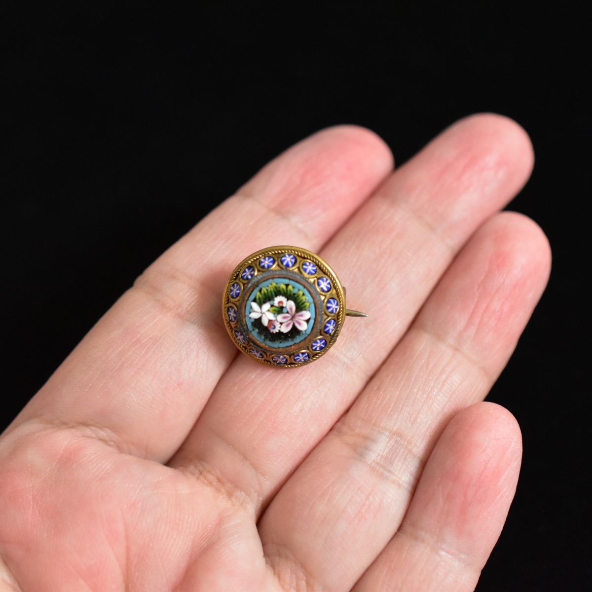 19世紀イタリアで作られたマイクロモザイクのブローチです。