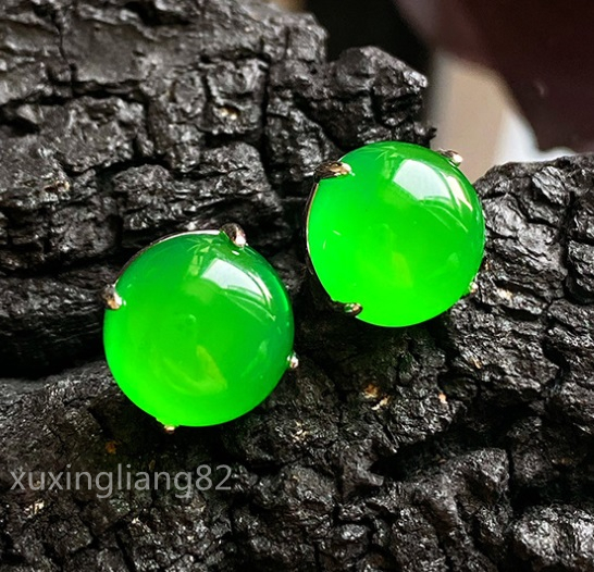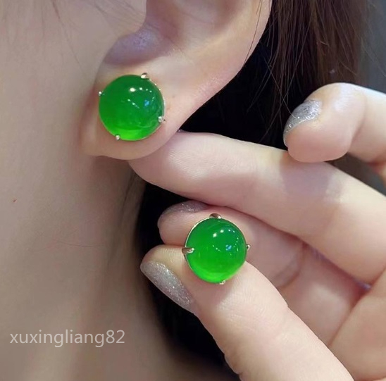 ◆最落なし◆シンプル 丸形 ピアス レディース 天然緑玉髓 翡翠 真の輝く イヤリング アクセサリー