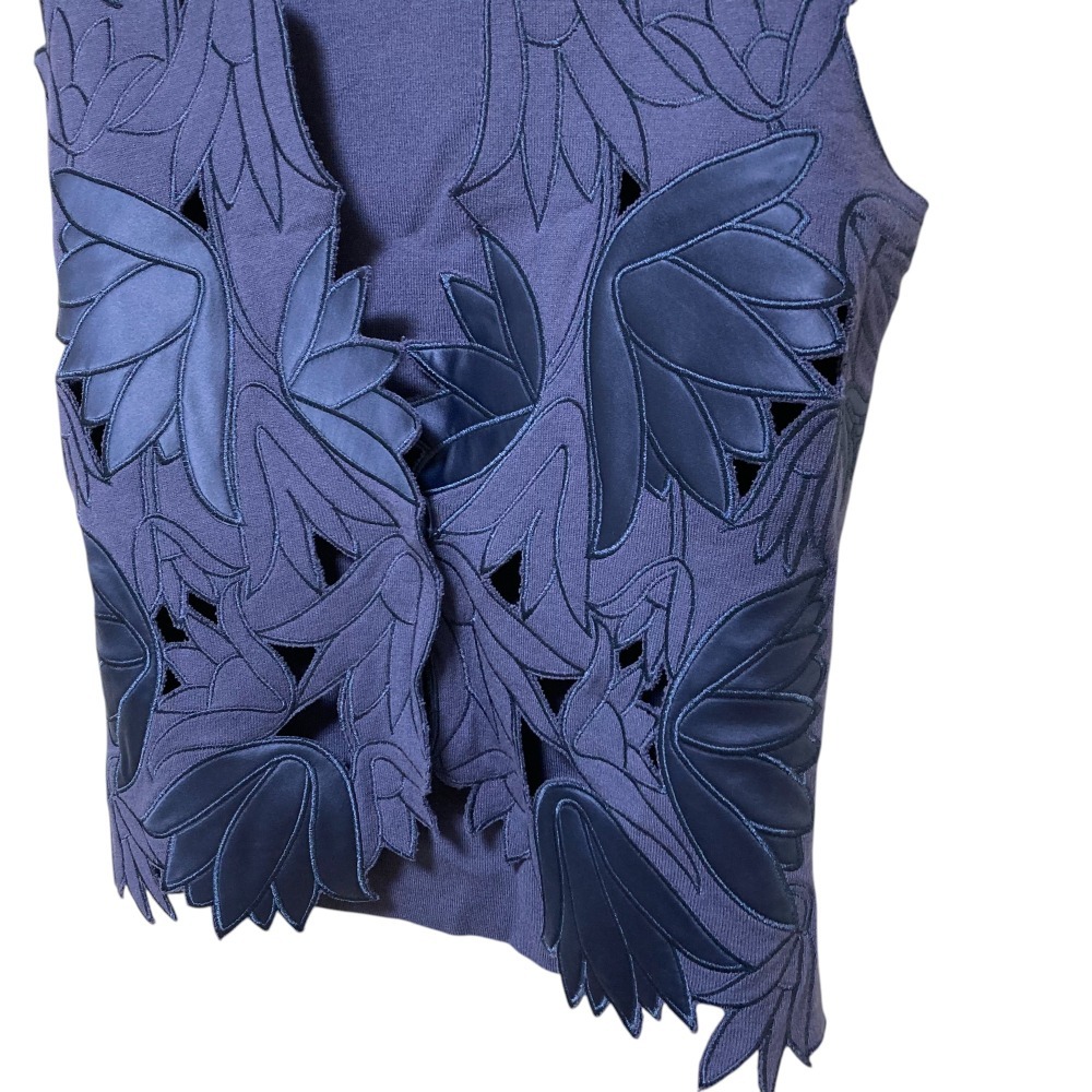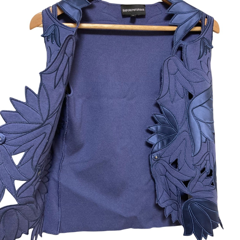 新品同様 EMPORIO ARMANI エンポリオアルマーニ フラワーデザイン ニットベスト ジレ サイズ40 ブルー系