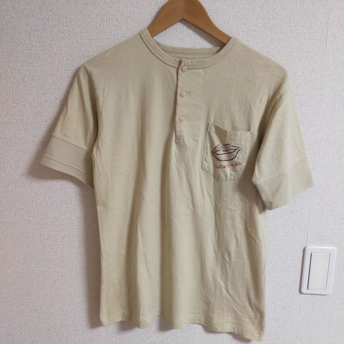 | RETRO DANDY レトロダンディ ヘンリーネック 半袖Tシャツ ポケット ハンドプリント風 ルード M ベージュ | |