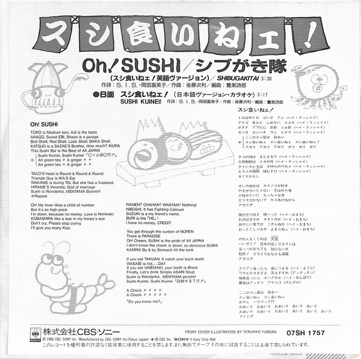 | 商品名稱 : | r2635/EP/シブがき隊/スシ食いねェ!英語ヴァージョン/Oh! Sushi/07SH 1757 |