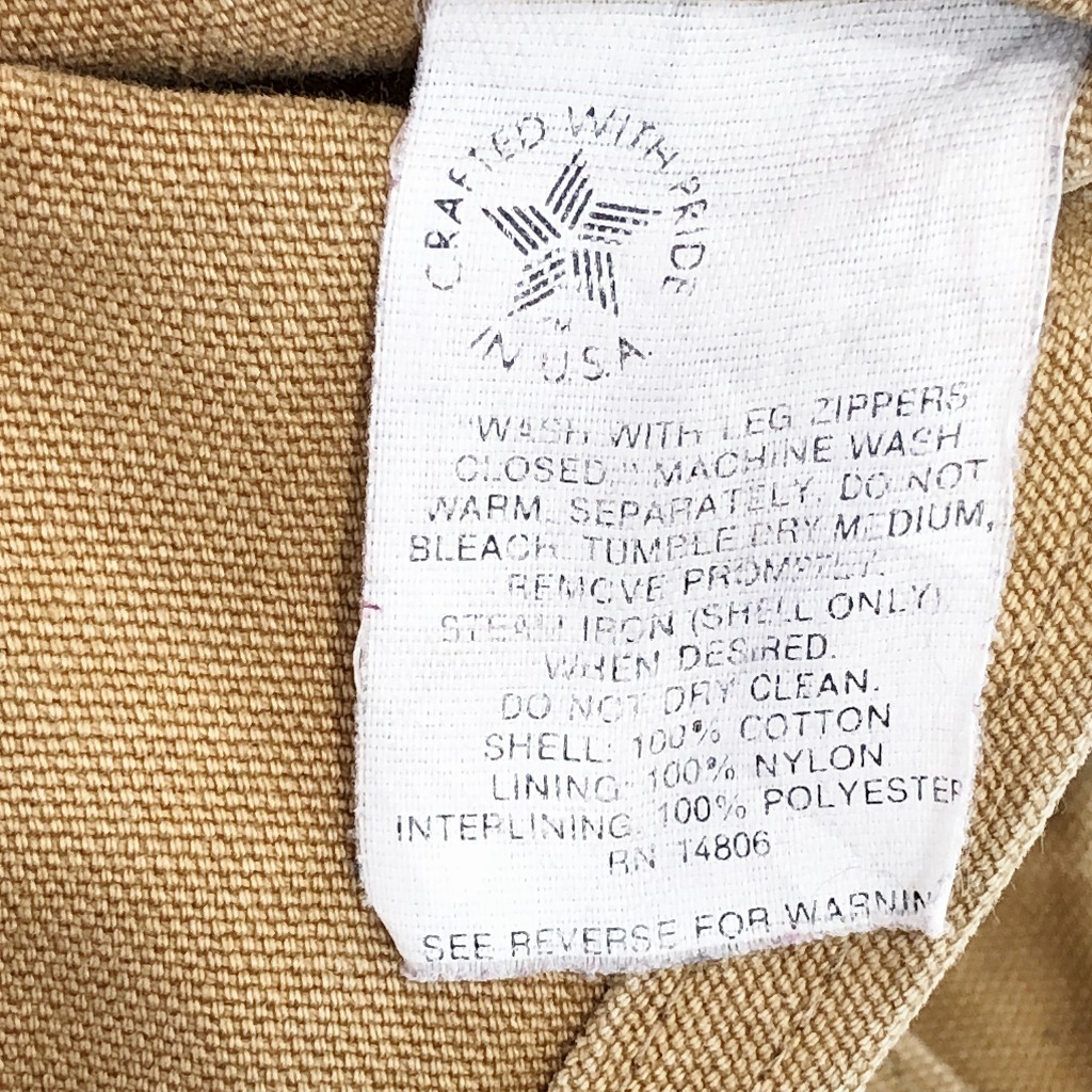 | 【商品管理番号】 P0204 【ブランド】 Carhartt/カーハート 【サイズ】 -- 表記無し(≒ L相当 ) 【実寸サイズ】 総丈:約153cm ウエスト:約104cm 股上:約35cm 股下:約68cm わたり幅:約36cm 裾幅:約27cm 【主な素材】 表地 : コットン 裏地 : 13848 中綿 : 13897 【色】 ブラウン 【仕様】 生産国 : USA製 90年代 ワーク、ダブルニー ダック地 キルティング 【状態】 汚れ:ヒップ、もも、ひざ、スネ キズ:ヒップ、もも 破れ:裾 特記事項:色褪せ | |||