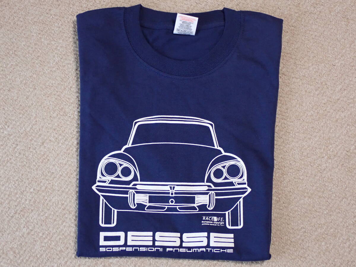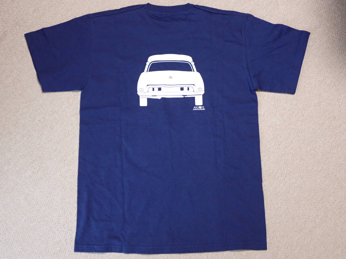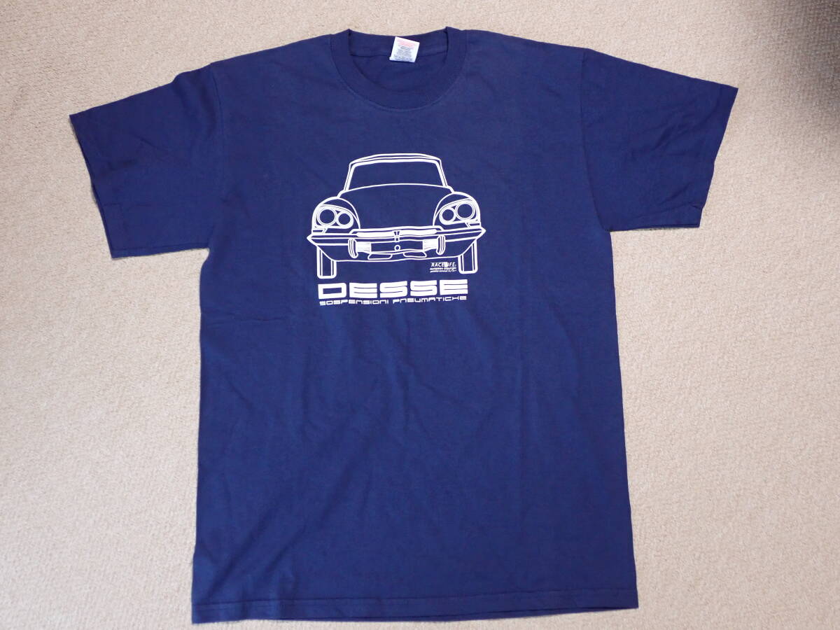 Citroen DS T-shirt navy blue 珍しい、DSのイラストが描かれたTシャツです。フランスで入手したモノです。生地の素材はコットン100%で厚手です。大きさは海外サイズのMで、日本サイズではLくらい、肩幅約45.5cm 袖丈約19.3cm 身幅約48.8cm 身丈約68.5cmございます。それでは、どうぞ宜しくお願い致します。