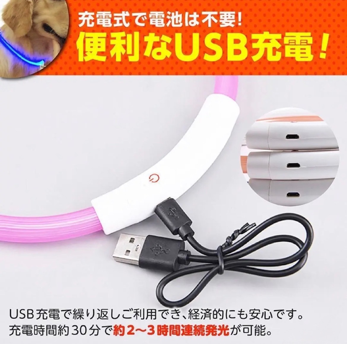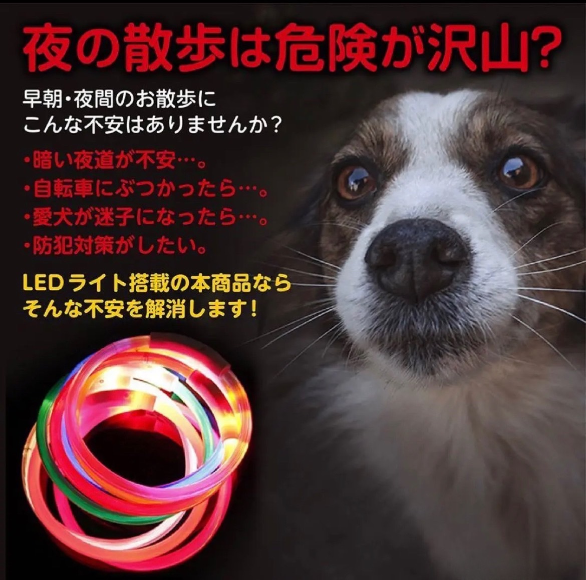 首輪 犬 光る レインボー おしゃれ 散歩 LEDライト USB充電 安全 夜