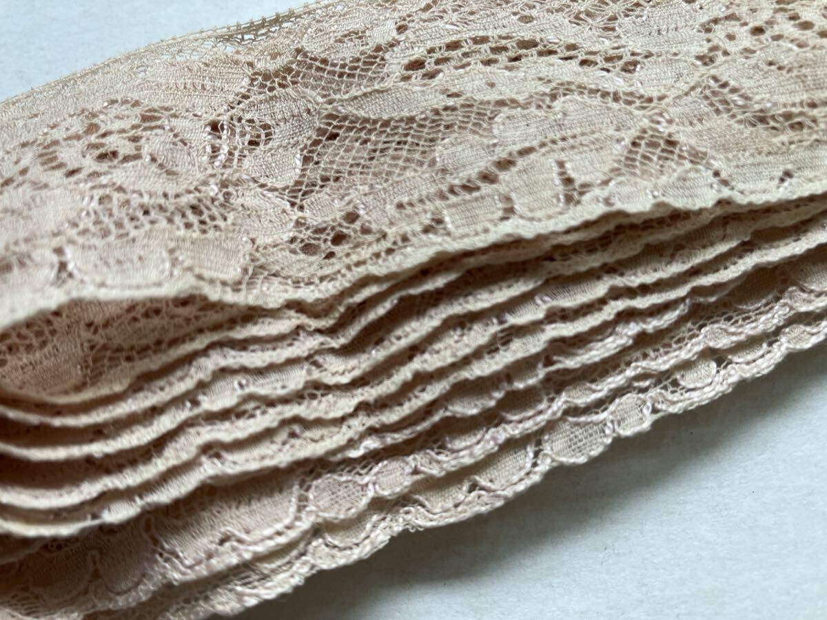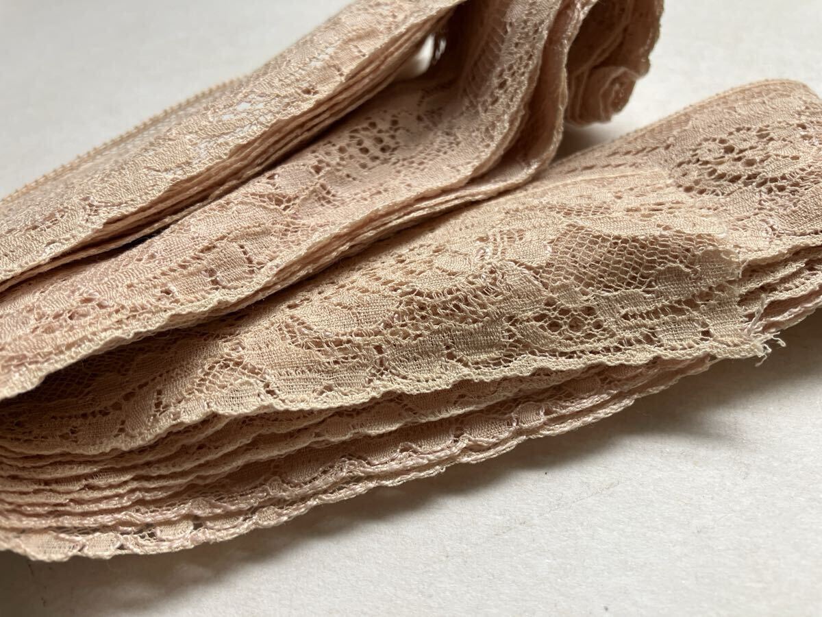 使い残しの未使用品か使われたものを保管していたのかはわかりません。表面が日焼け汚れを感じますが、中の方は綺麗で製造時の状態だと思います。使用感は感じられませんが、時を超えて保管されていたものになりますので、細かな経年シミ汚れなどあるかもしれません。気になさらない方、またはカットしてハンドメイドの素材としてもご利用くださる方に適していると思います。 サイズ:幅3.5cm 長さ 5M程度
