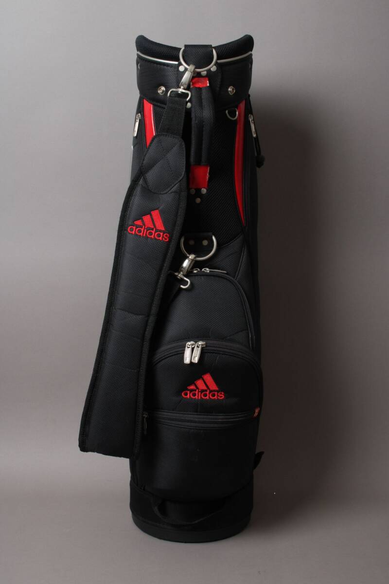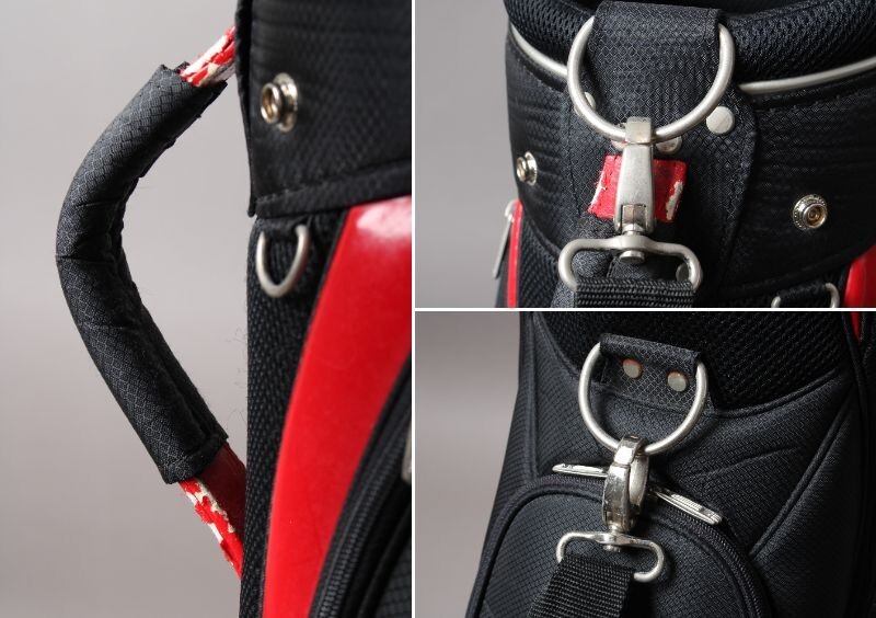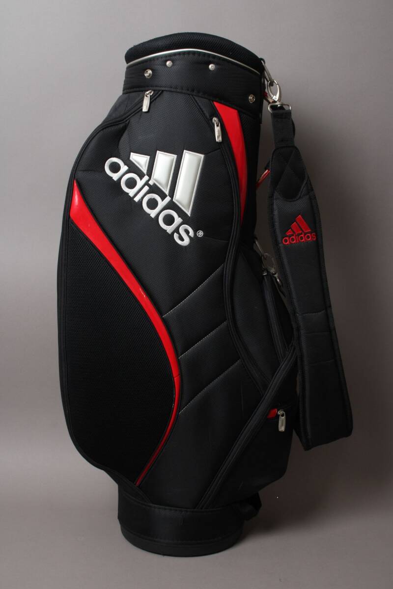 良品 adidas アディダス キャディバッグ《8型》カート 5分割 ブラック レッド ショルダー フード ゴルフバッグ #160※C776