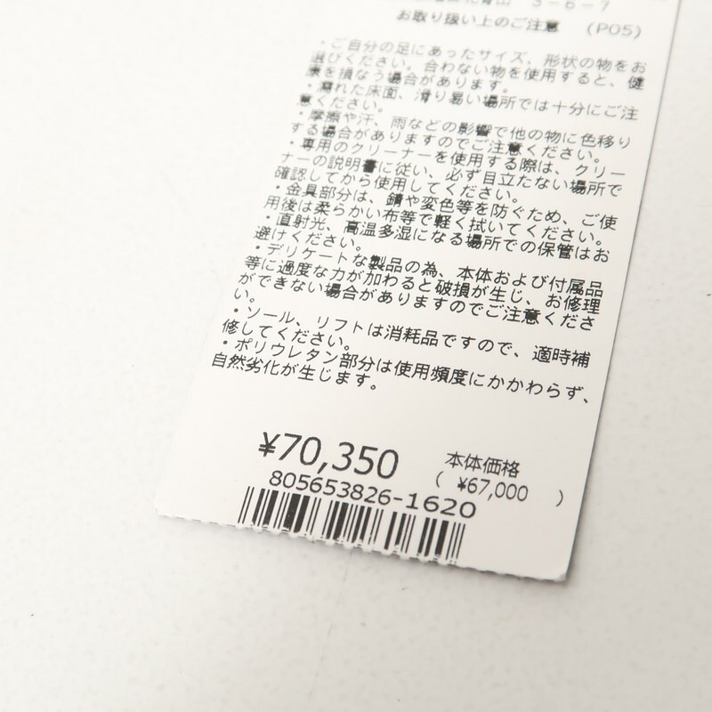 表記サイズ:38 1/2 (弊社スタッフが試し履きしてみたところ、「25.0cm」程度の方に丁度良いかと思われます。) ※サイズに関しては足の甲の高さや幅等に個人差があるため、取り扱い正規店で同サイズの靴の試着をして頂くことをおすすめしています。 ・商品実寸 アウトソール最大幅:約8cm ヒール高さ :約10cm |