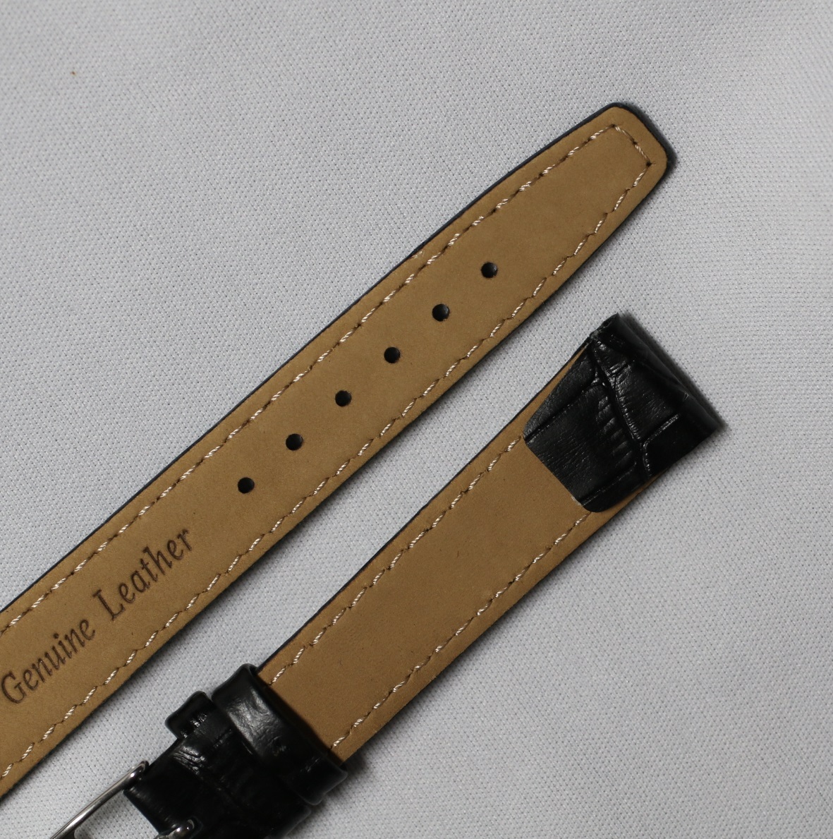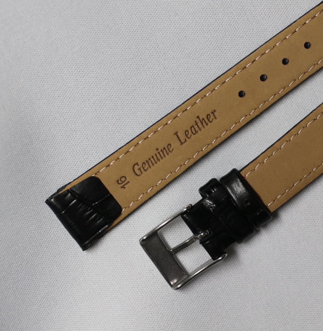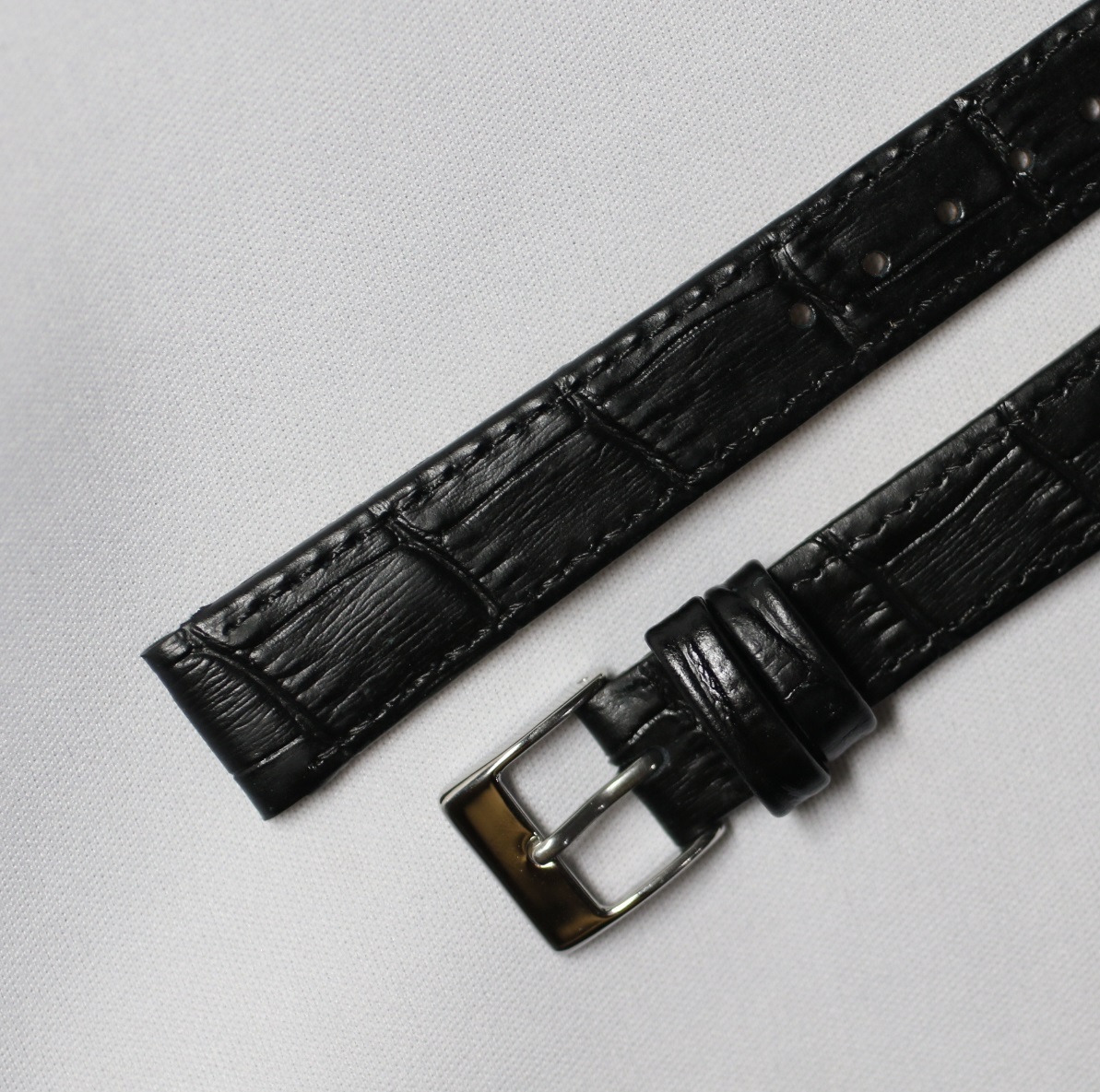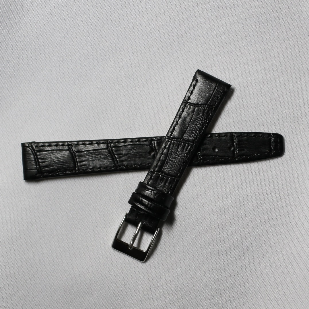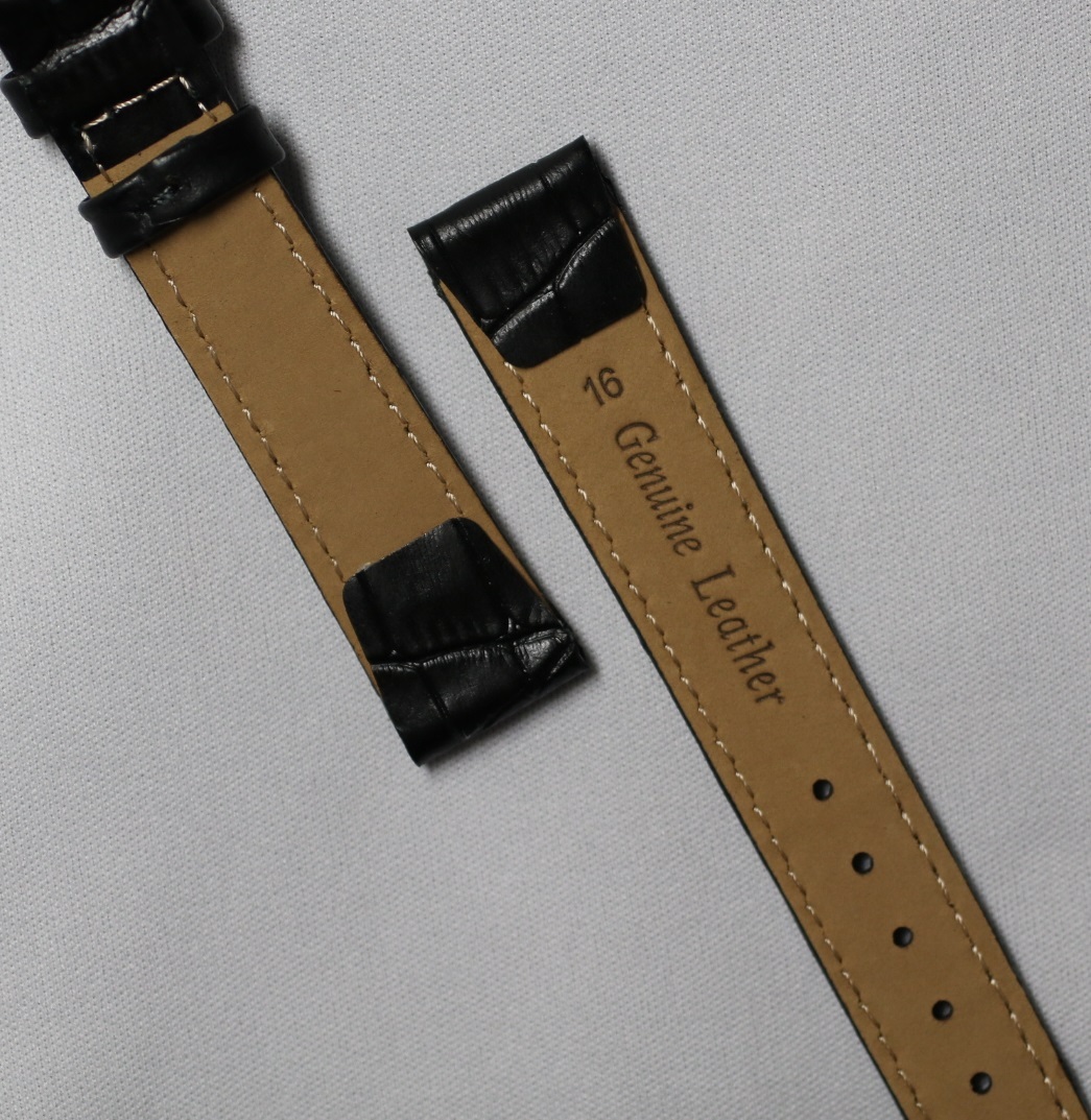 16㎜ オープンエンド 固定ラグ 黒・ブラック アリゲーター ワニ型押し SS銀色尾錠 イタリアンカーフ ワイヤーラグ用 新品