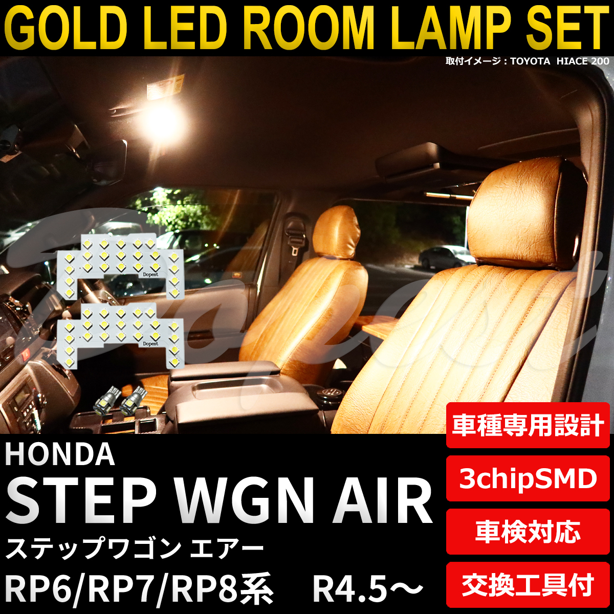 ステップワゴン エアー LEDルームランプセット RP6/7/8系 電球色 商品内容 DopestオリジナルLEDルームランプセット! センター・リア:23連3チップSMD×2 ドアカーテシ:5連3チップSMD×2(無極性) 【計4点セット】 ◆樹脂製ルームランプ交換工具付き 適合 HONDA(ホンダ)ステップワゴン エアー[STEP WGN AIR] RP6/RP7/RP8系 R4.5~ ※全グレード可 ※フロントマップは純正LED(交換不可)のため車内他箇所のランプセットになります。 カラー 電球色/3250Kクラス ※車検対応 注意点 純正LEDルームランプ(電球の取り外しが出来ないタイプ)の場合はお取り付け出来ませんのでご注意ください。商品のセット内容とお車の室内灯をご確認下さい。取り付けの際はルームランプユニットにマスキングテープを貼るなど保護対策をお願いします。パーツのお取り付けは自己責任でお願いします。パーツを取り付けたことによる事故・不具合等の一切の保証は致しかねます。 保証期間 商品ご落札日から1年間 ※取り付け破損、紛失、他部品、購入商品以外、工賃の保証などその他不可。
