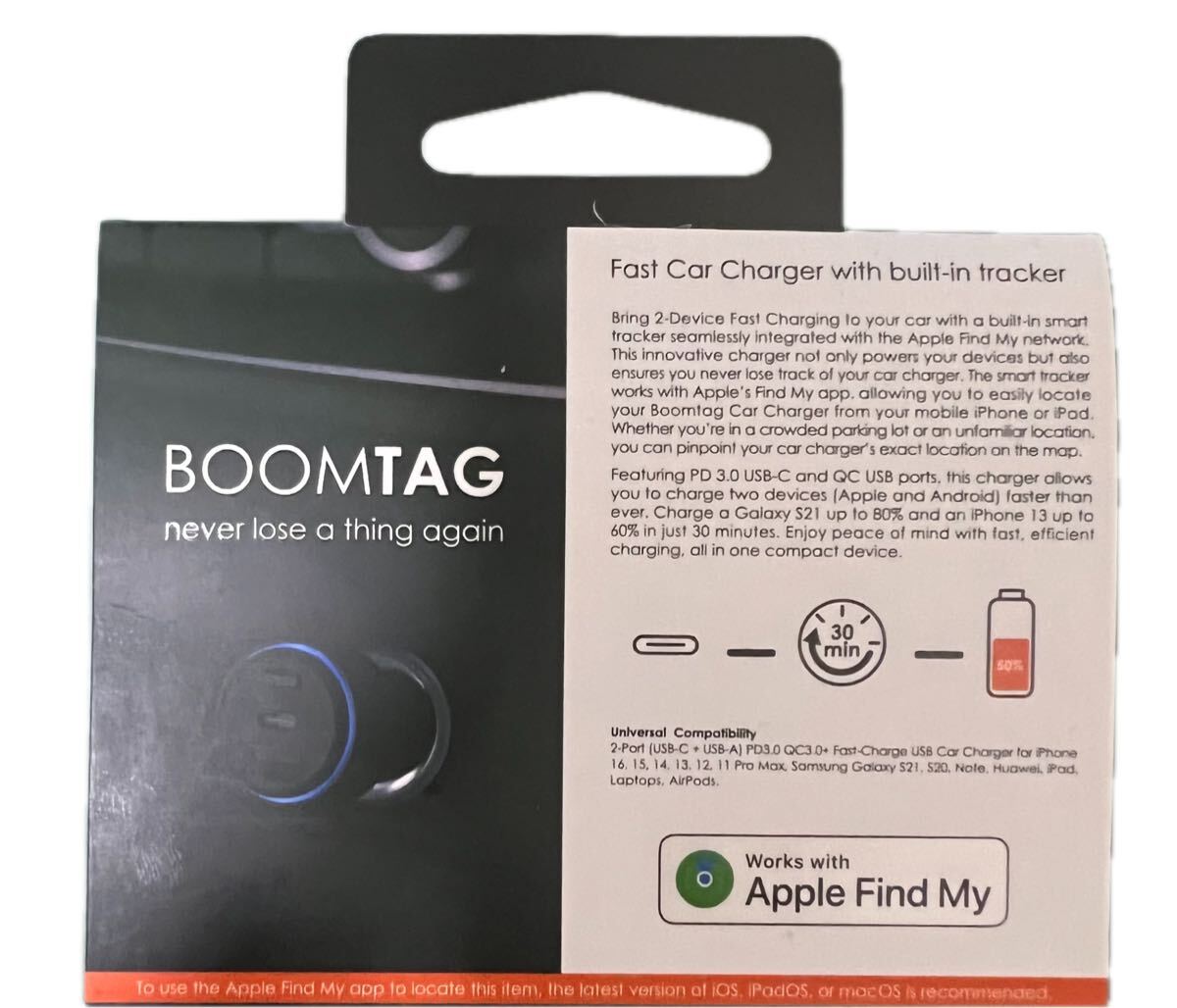 | 商品名稱 : | BOOMTAG Fast Car Charger with built-in tracker(トラッカー内蔵車載充電器)カーチャージャーシガーソケット20W急速充電 |
