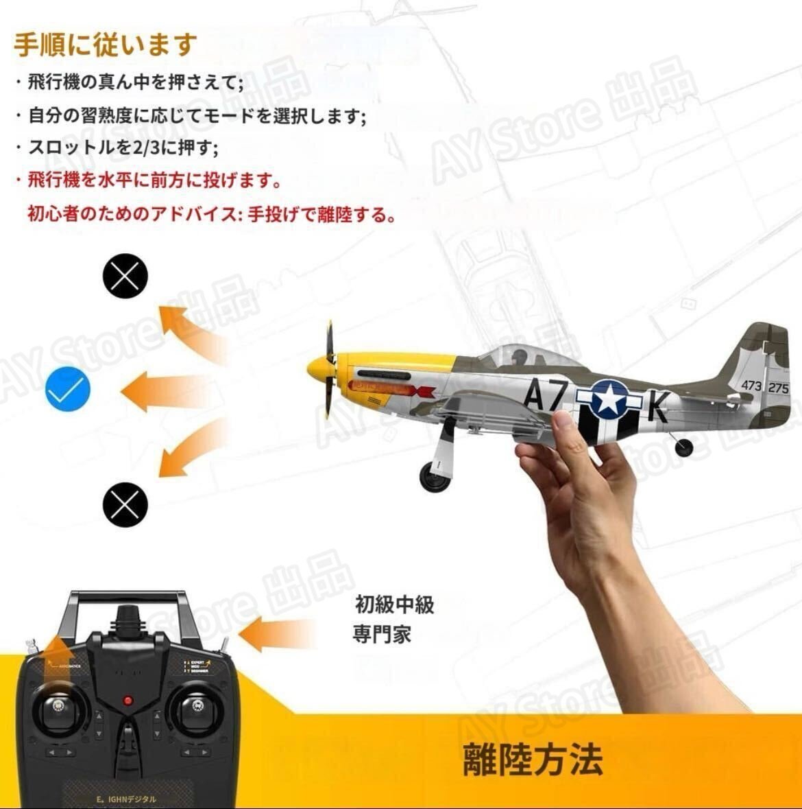 バッテリ國際運送規定電池為危險物品,無法運送,購買後會幫您取出丟棄。 ー*1 Volantex P-51D P51 ブラシレスモーター マスタング 4CH Xpilotジャイロ RC電動ラジコン飛行機 Futaba SFHSS 500mmbhw0234