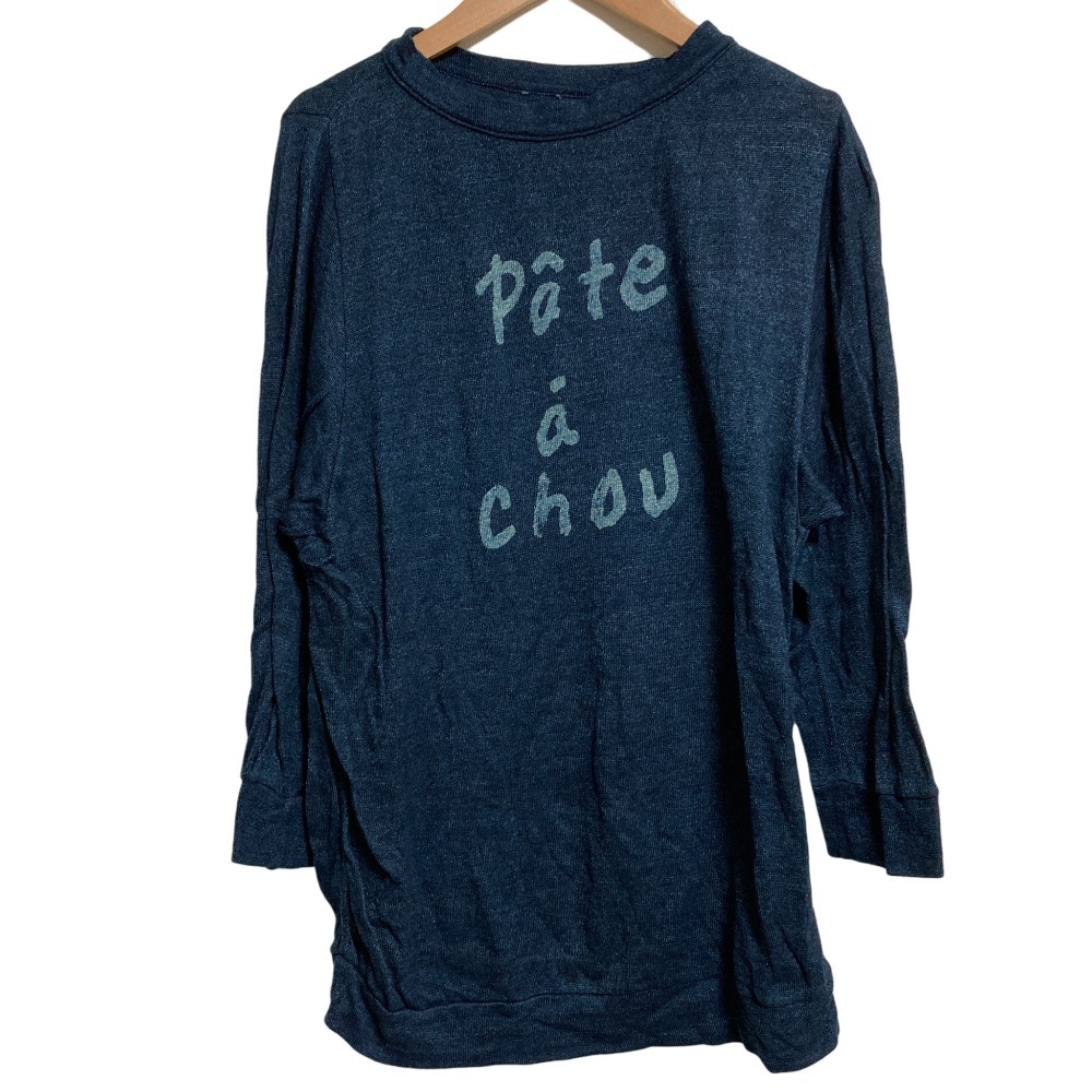 美品 Pate a Chou 45R パトアシュ フォーティーファイブアール ロゴプリント ロングスリーブ カットソー Tシャツ インディゴ
