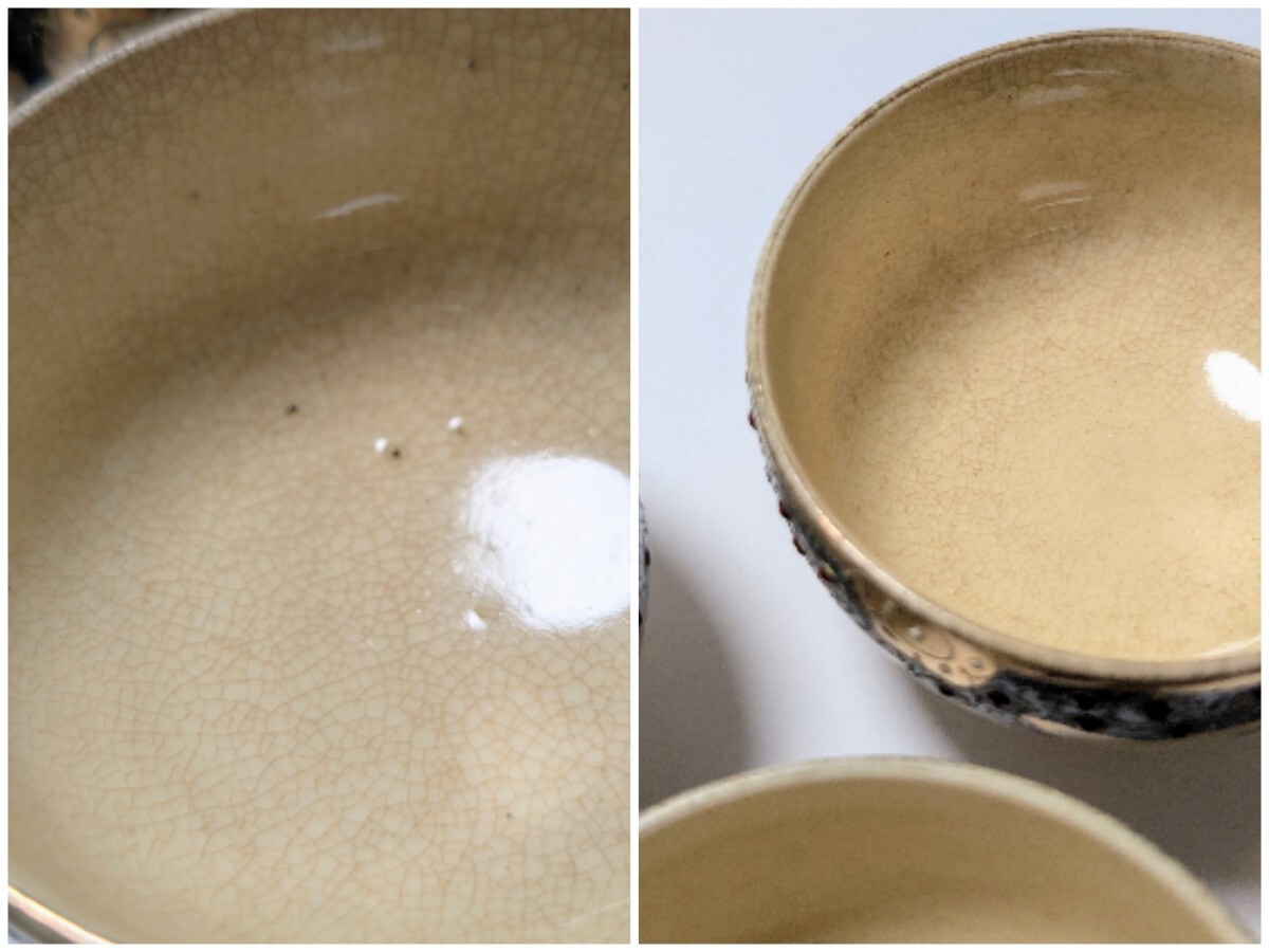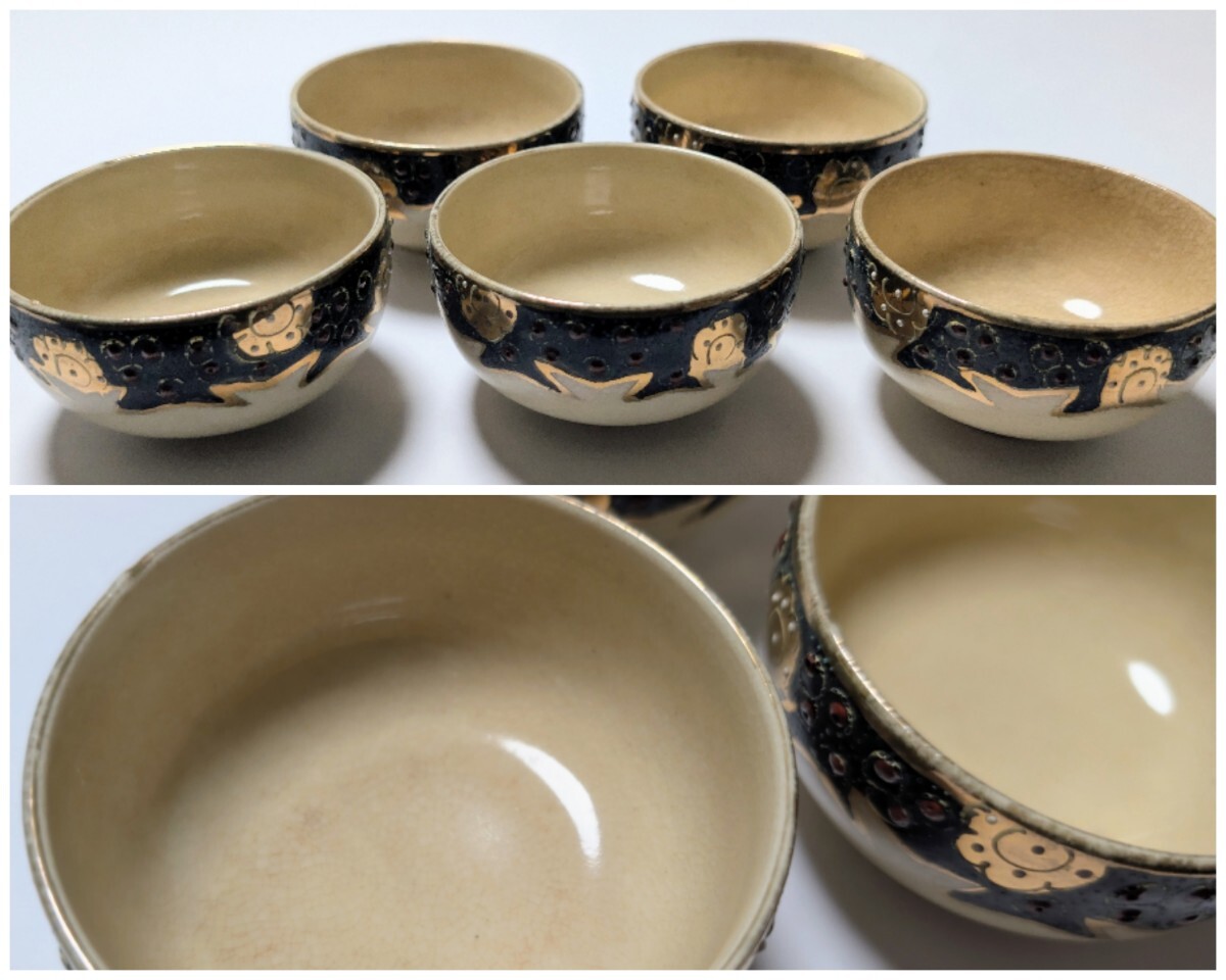 『商品情報と自己紹介欄を必ずお読みになり、ご納得された上でのご入札をお願いします』 ○トラブル防止の為最後までお読みください。 入札された方はご納得の上と理解してお取引致します。 ○全体的にホツやニュウはありませんが、煎茶碗の一客のみ縁に直しがあります。 窯傷はご理解ください。 その他、使用感や経年の汚れが多少なりともあります。 品物の状態は主観での評価になりますので、画像をよくご覧になられてから、ご判断してください。 神経質な方や細かな点が気になる方、美品や完品をお求めの方は入札をおやめください。 サイズ 急須 幅:約13cm(持ち手・注ぎ口含む) 口径:約4.4cm 深さ:約5.3cm 高さ:約8.8cm 湯冷まし 縦:約10.3cm 横:約7cm 深さ:約2.5cm 高さ:約4.8cm 煎茶碗 幅:約7.3cm 深さ:約3.2cm 高さ:約4.2cm 湯呑 幅:約6.3cm 深さ:約5cm 高さ:約6cm ○発送開始日は3日〜7日に設定しております。お早めの発送をご希望の場合は、取引開始時にお知らせください。 個人で空いた時間に出品から発送までを行っておりますので、お店と同等の対応はできません。 設定した発送開始日内に発送しておりますので、安易な催促はおやめください。 お待ちいただけない方は、入札をおやめください。 ◯気になる点は入札前にご質問ください。 ご質問の内容が説明欄に記載されている場合は回答致しません。 ◯落札後の一方的なキャンセルはおやめください。 事情がある場合は受け付けますが、理不尽な理由でのキャンセルはお受けできません。 落札前に入札取消をご依頼されるか、慎重な入札をお願いいたします。 ◯品物に不備があった場合は必ず受取連絡前にお知らせください。 ◯梱包材はプチプチについては新品、その他は新聞紙や紙袋、段ボール等をリサイクルして使用します。 汚れが目立つものは使用しませんが、気になる方は事前にお伝えいただくか、入札をおやめください。 ○対等な立場でのお取引をお願いします。 落札者側が立場が上とお考えの方は入札をおやめください。 経験した具体例として、初回連絡をされない方、出品者に対して傲慢で横柄な方、お支払いされない方、ご相談なしに一方的にキャンセルを申し付ける方、再配達をさせ続けて配送会社に迷惑をかける方、受取連絡をされない方、長期間経過してから受取連絡される方、報復評価をされる方、虚偽の説明を用いて不当な評価をされる方、自らの迷惑行為を棚に上げて人のせいにされる方、要求を通すために脅迫行為をされる方がいらっしゃいます。 このような対応をされる方は全体のごく一部ですが、直接対応はせず全てヤフーに報告致します。 ○取引ナビでの挨拶等は必要でない限り行っておりませんのでご了承ください。 よろしくお願いいたします。 >